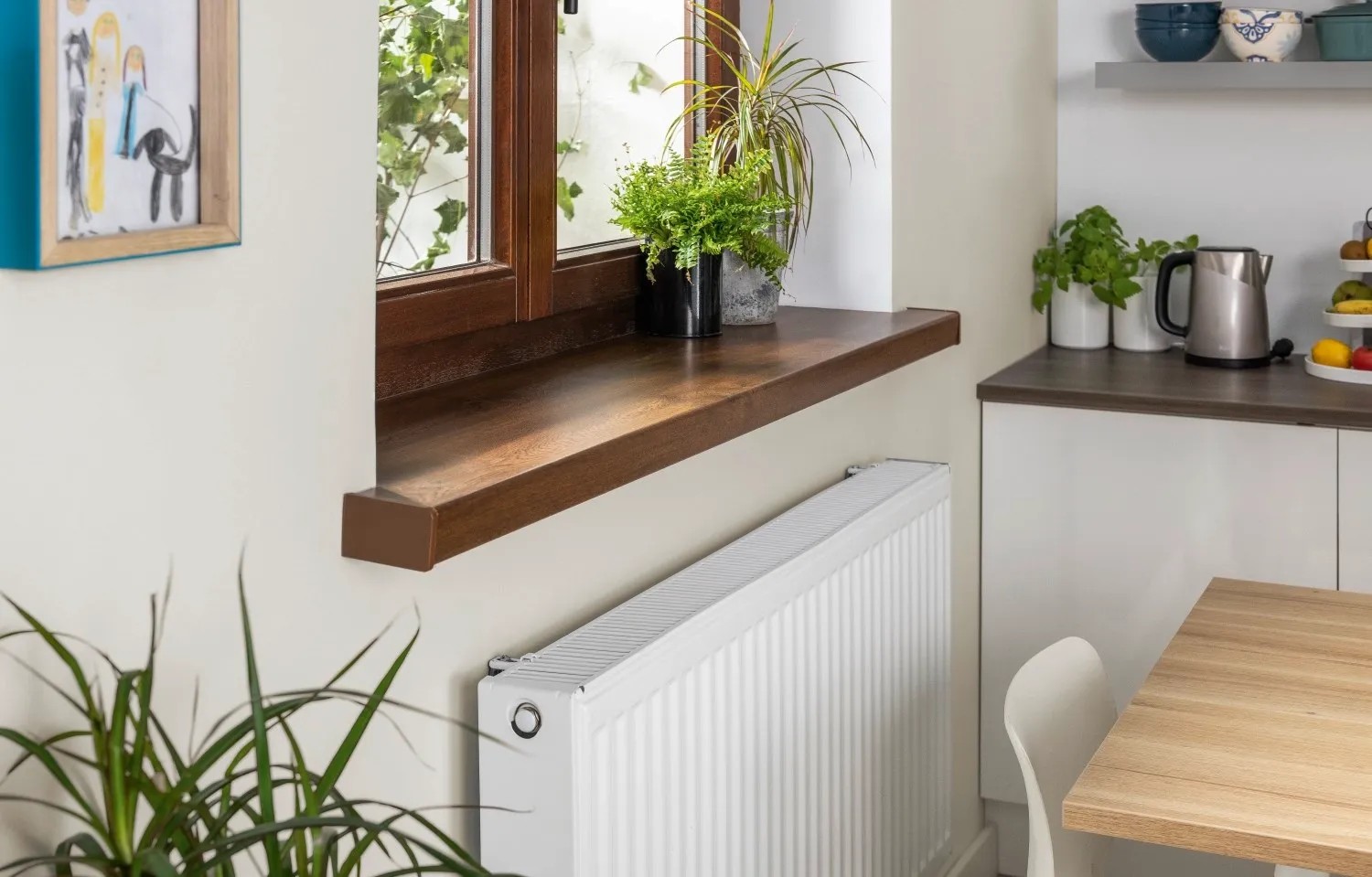 Nakładka na parapet PVC, w kolorze orzech, marki Vilo.