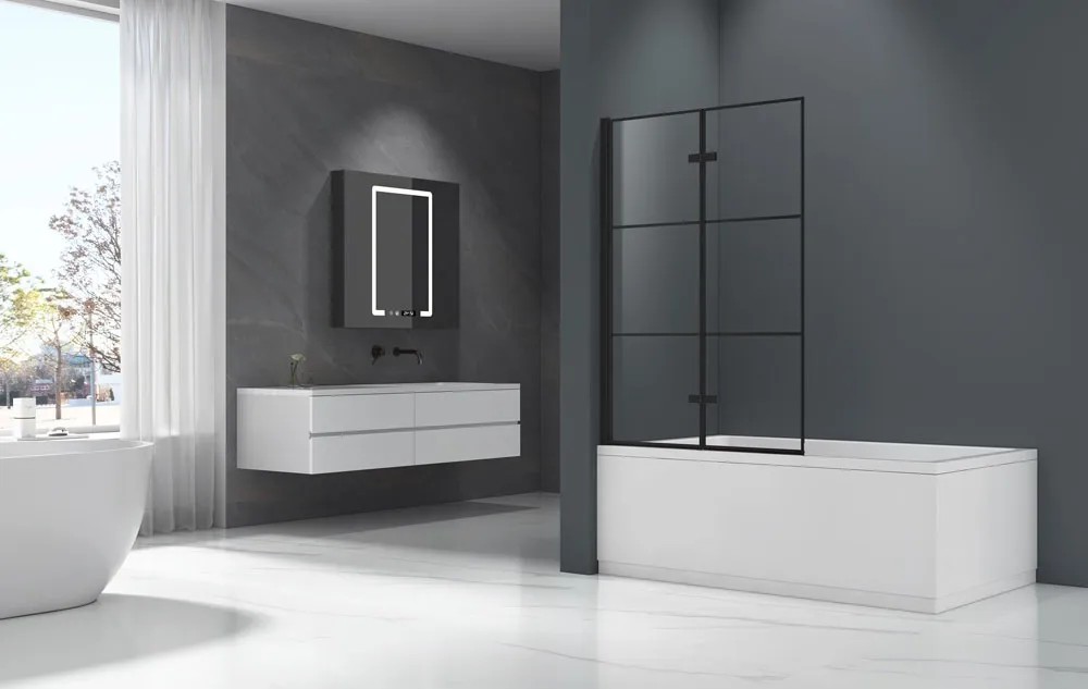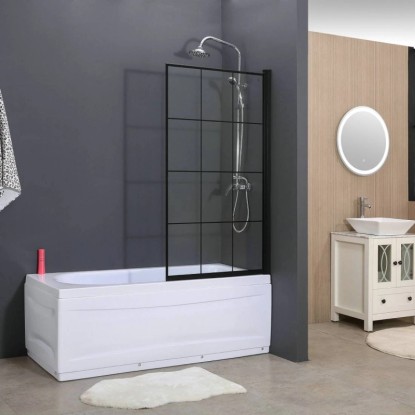 Parawan nawannowy MARCO marki EVG z profilem w kolorze czarnym wykonany jest z przezroczystego szkła hartowanego o grubości 6 mm ze szprosami. Parawan o wymiarach 1000 x 1500 mm posiada profil w kolorze czarnym, dzięki czemu nada klasycznego charak