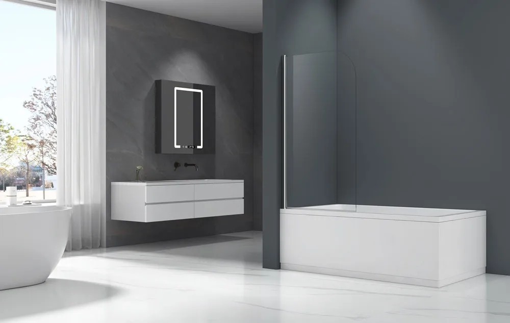 Parawan nawannowy ORO marki EVG z profilem w kolorze chromu wykonany jest z przezroczystego szkła hartowanego o grubości 5 mm. Parawan o wymiarach 700 x 1300 mm posiada profil w kolorze chromu, dzięki czemu nada nowoczesnego charakteru każdej łazie