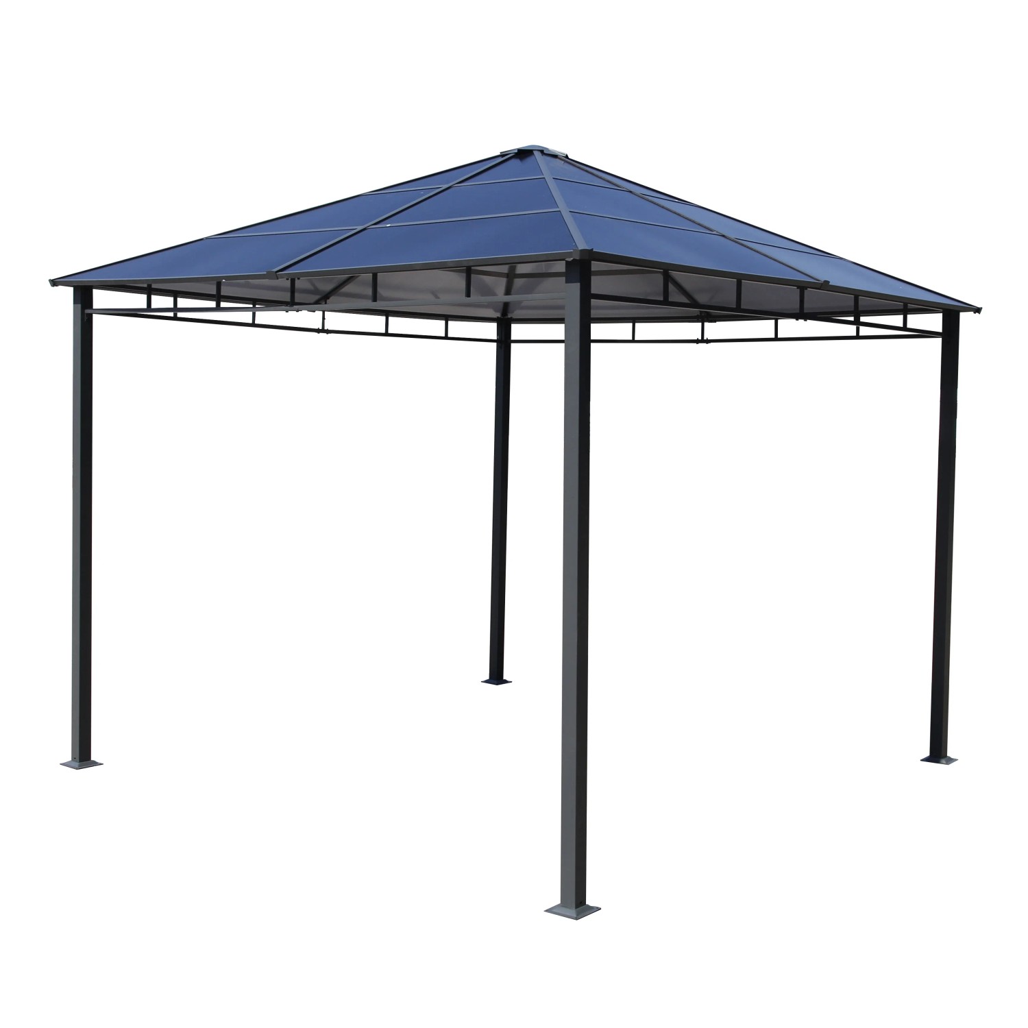 Wykonany ze stali, nowoczesny pawilon to dobra alternatywa dla klasycznej altany. Ciesz się odpoczynkiem na świeżym powietrzu nawet jeśli świeci zbyt mocne słońce. Solidnie wykonany pawilon ogrodowy zapewni również ochronę ogrodowym sprzętom albo posłuży jako wiata garażowa.