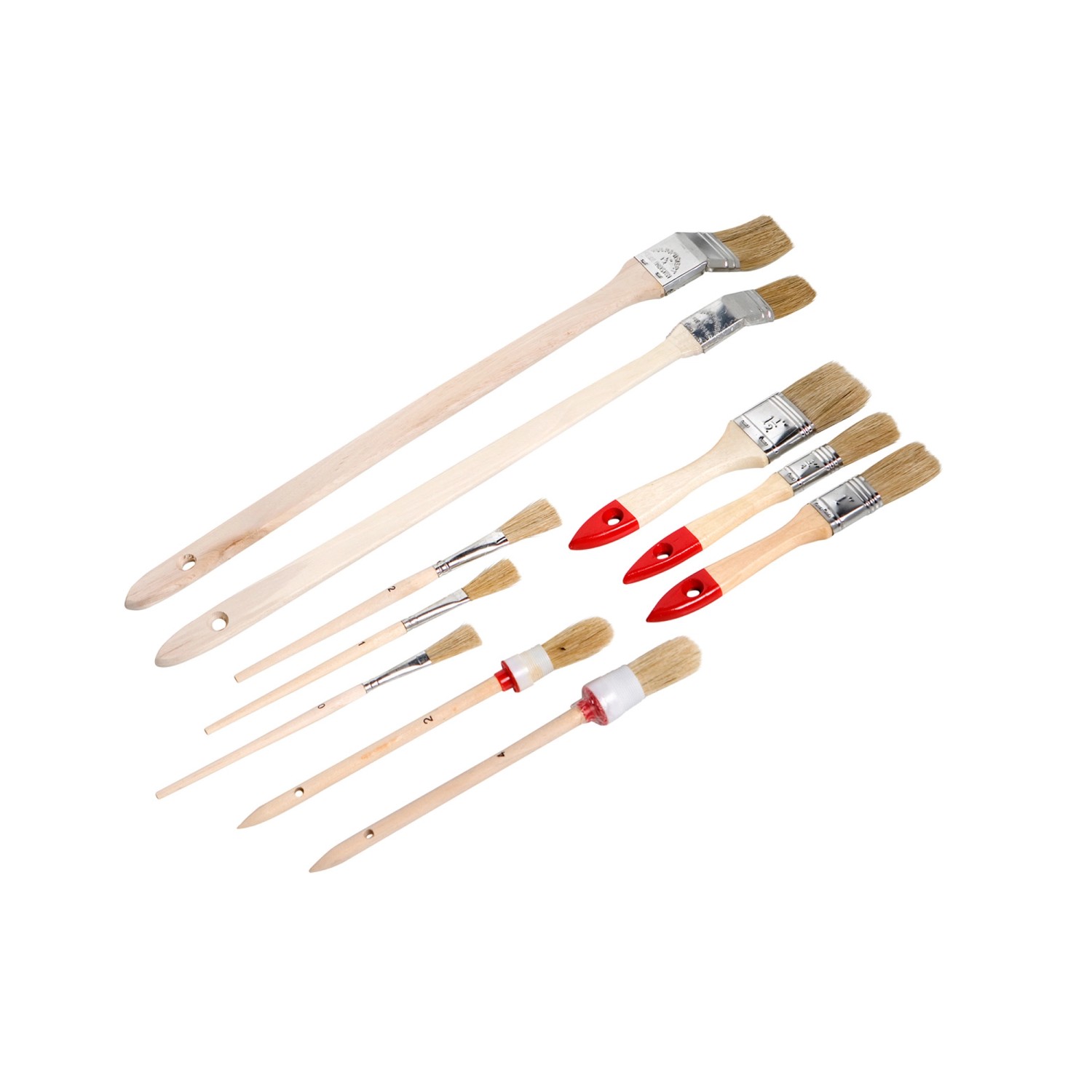 Składa się z trzech pędzli płaskich (20 mm, 25 mm oraz 35 mm), dwóch pędzli okrągłych (rozmiar 2 i 4), dwóch pędzli do grzejników (25 mm oraz 35 mm), a także trzech pędzli do emalii (rozmiary 0, 1 oraz 2).