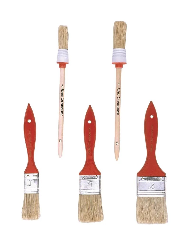 Składa się z trzech pędzli płaskich (20 mm, 35 mm, 50 mm) oraz dwóch pędzli okrągłych (rozmiar 2 i 4).