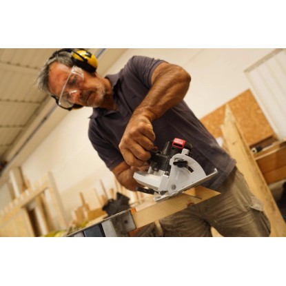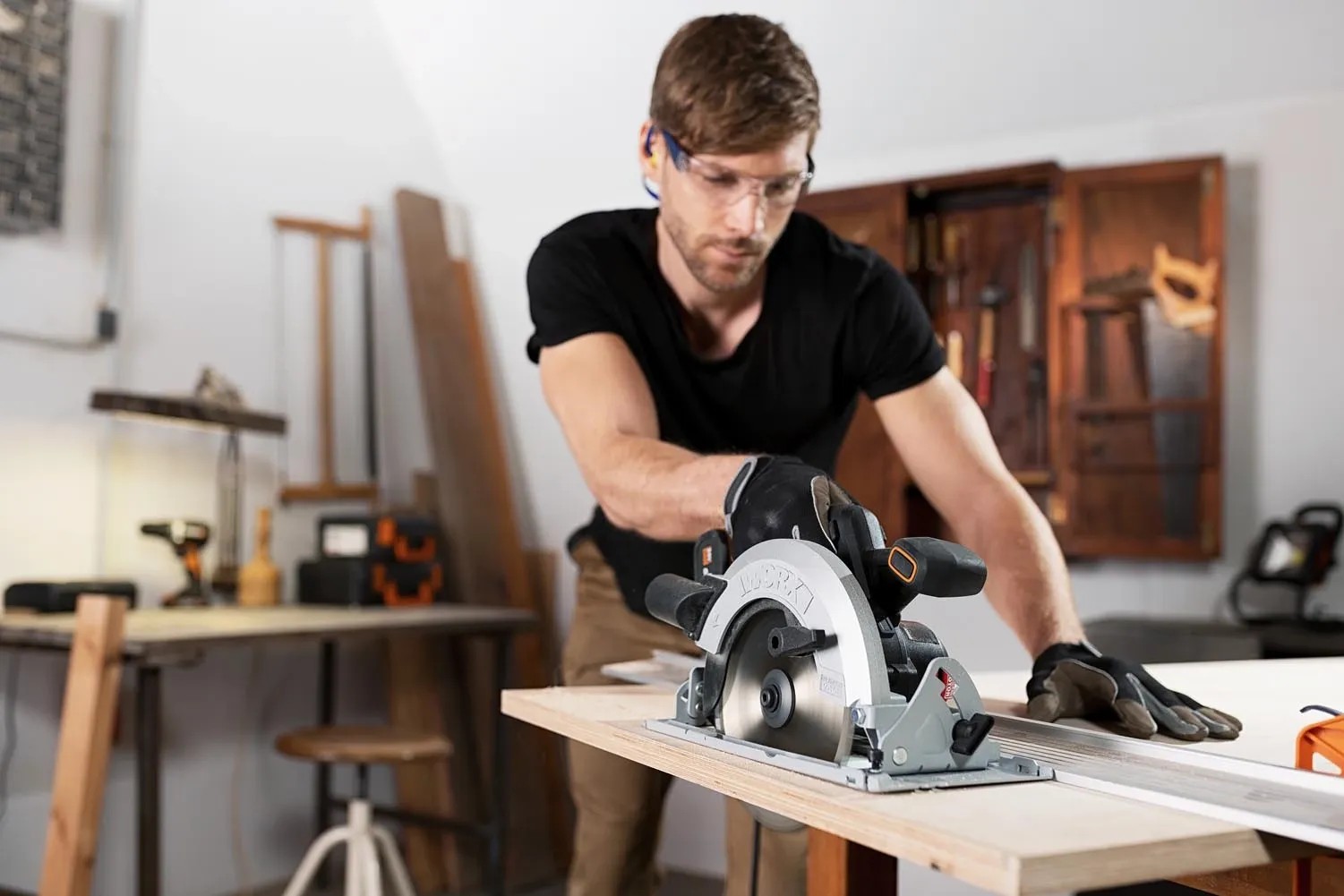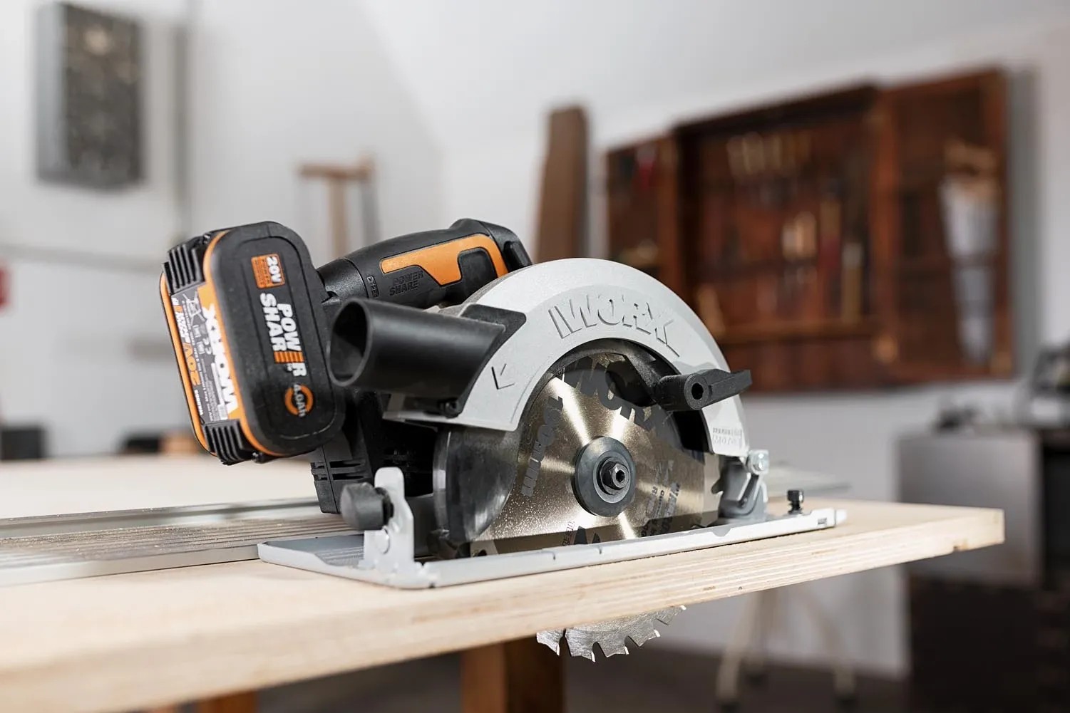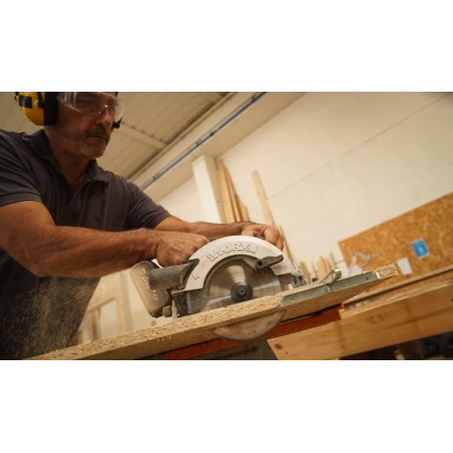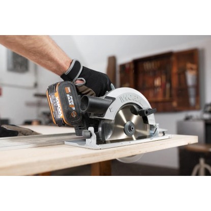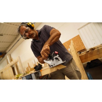 Bezprzewodowa pilarka tarczowa zasilana akumulatorem litowo-jonowym 20V wyposażona w bezszczotkowy silnik prądu stałego, zwiększający jej wydajność i żywotność przy zachowaniu kompaktowego rozmiaru. Praca urządzenia odpowiada przewodowej pilarce tarczowej o mocy 900W. Pilarka posiada także port na pył oraz adapter odkurzacza, które pomagają w utrzymaniu porządku na stanowisku pracy.