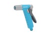 Ergonomiczny zraszacz pistoletowy wykonany z wysokiej jakości tworzyw sztucznych, wyprofilowany w taki sposób, aby dobrze dopasowywał się do kształtu każdej dłoni. Zraszacz z pełną, płynną regulacją strumienia wody. Wygodne uruchamianie zraszacza i blokada strumienia za pomocą przycisku.