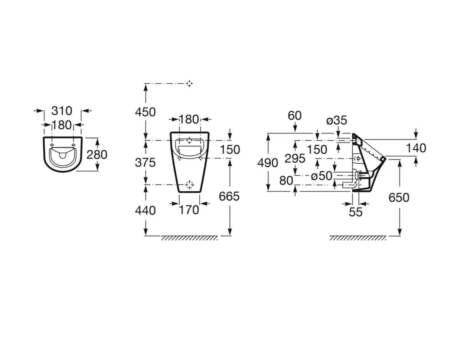 Dzięki wysokiej jakości wykonania pisuar stanowi estetyczny element wyposażenia każdej łazienki.Dopływ wody znajdujący się z tyłu.