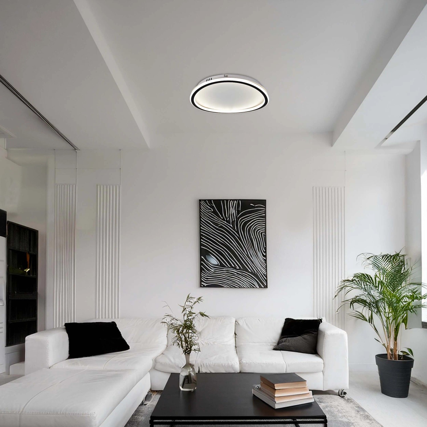 Lampa sufitowa CALI to eleganckie oświetlenie w dwóch kształtach - okrągłym lub kwadratowym. Klasyczne połączenie czerni i bieli pasuje do każdego wnętrza. Emituje neutralne światło, które równomiernie wypełnia przestrzeń i świetnie sprawdza się podczas wszelkich codziennych aktywności. Możliwość wymiany żarówki zapewnia długotrwałe użytkowanie, a solidna metalowa konstrukcja gwarantuje trwałość. Idealna do salonu, kuchni i łazienki.