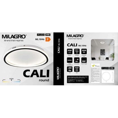 MiLAGRO Lampa sufitowa LED CALI 30W 4000K 2020lm śr. 40 cm biało-czarna