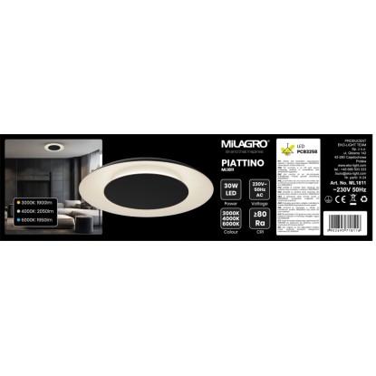 MiLAGRO Lampa sufitowa LED PIATTINO 30W 3000/4000/6000K 1900lm czarna