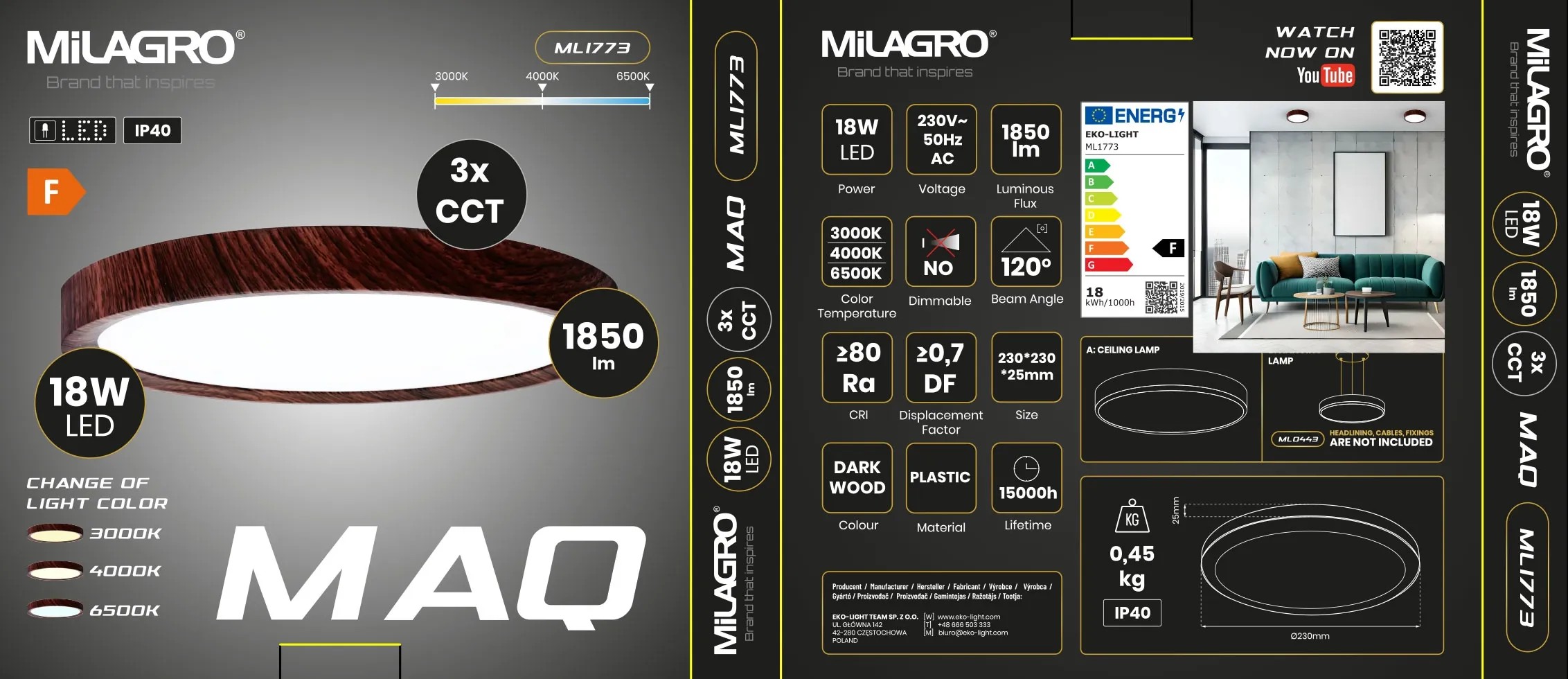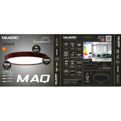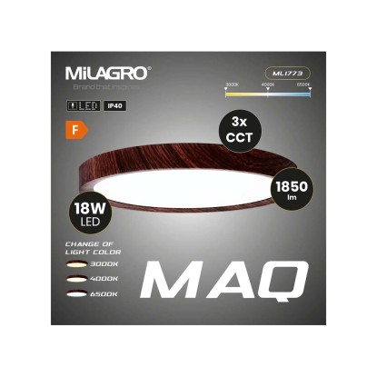 MiLAGRO Plafon LED MAQ 18W 3000/4000/6500K 1850 lm IP40 dark wood