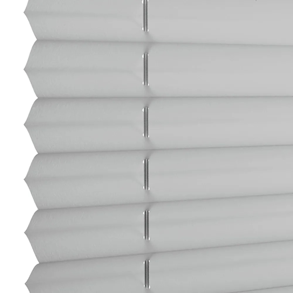 Subtelna tkanina rolety plisowanej, w jasnym i uniwersalnym kolorze, idealnie komponuje się z każdym typem pomieszczeń. W ten sposób zwiększy harmonijną atmosferę w domu, biurze, czy też wszelkich przestrzeniach komercyjnych.