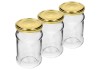Zestaw 3 słoików o pojemności 300 ml wykonanych z wysokiej jakości szkła ozdobionego niebanalnym, białym nadrukiem przedstawiającym mix owoców.