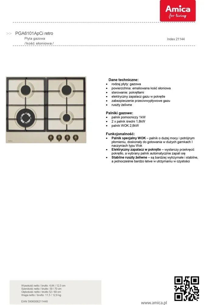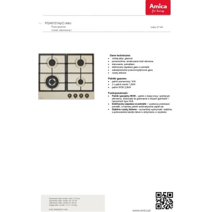 AMICA Płyta gazowa 6101APCI beżowa