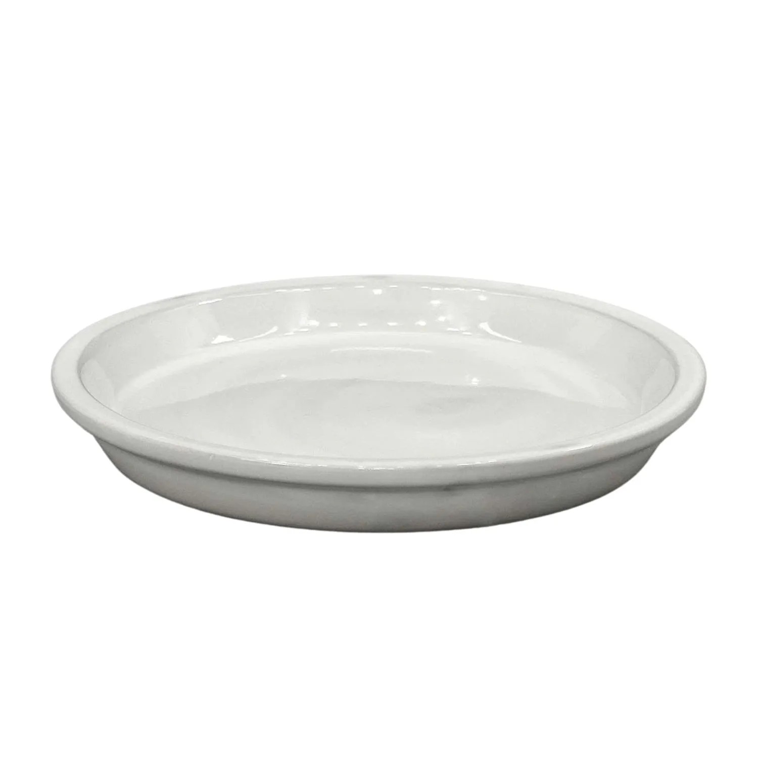 Szkliwiona podstawka ceramiczna w kolorze białym o średnicy 41 cm. Przeznaczona do aranzacji tarasów, balkonów i ogrodów.