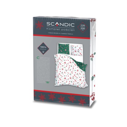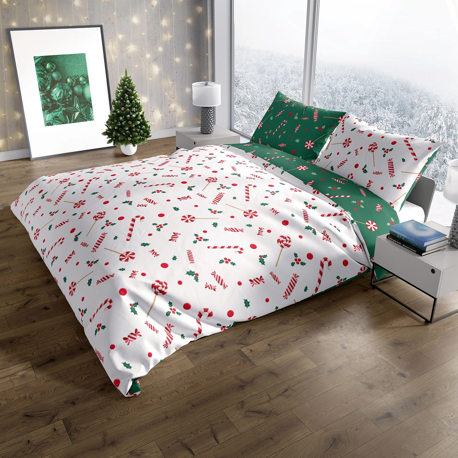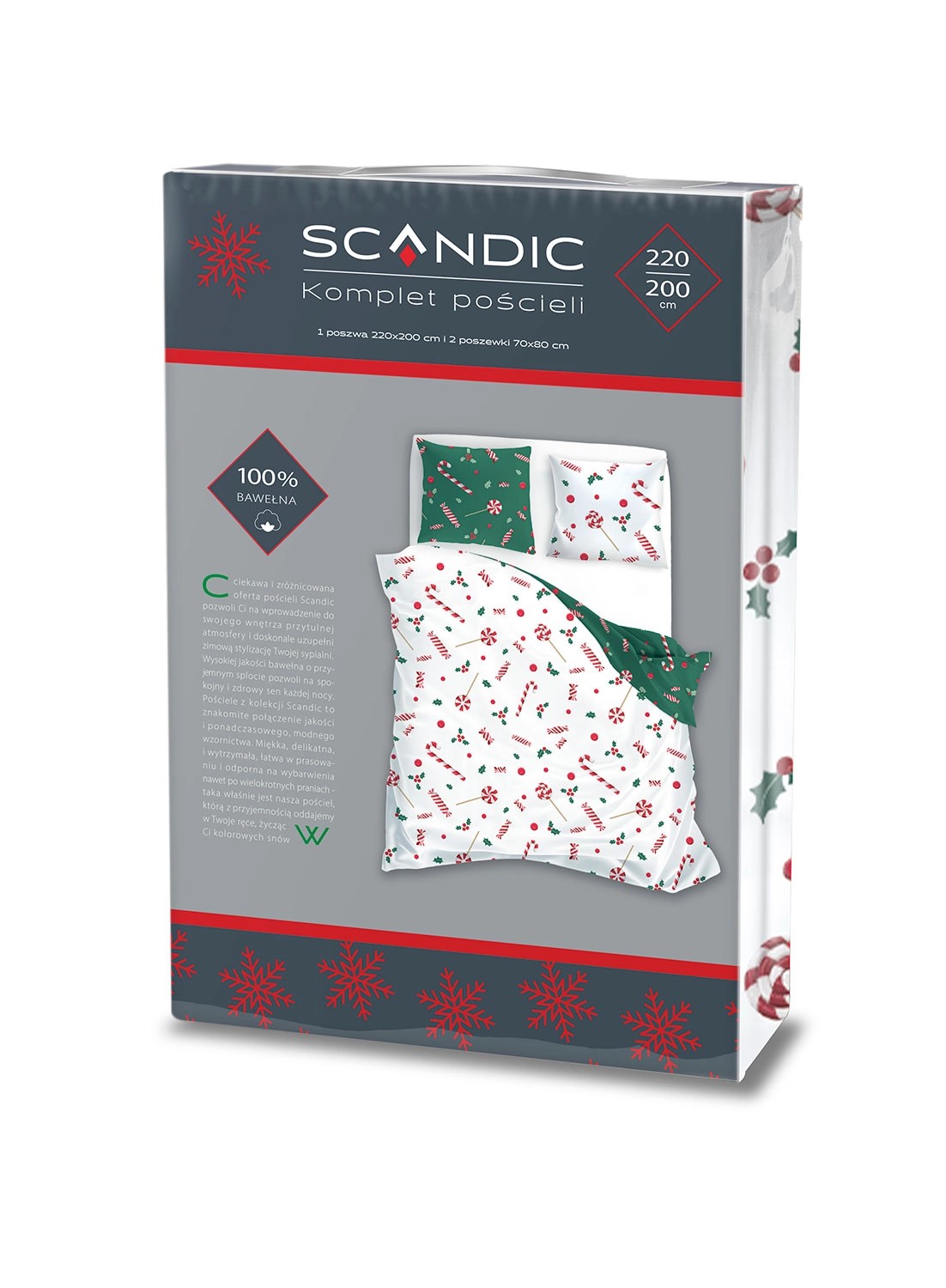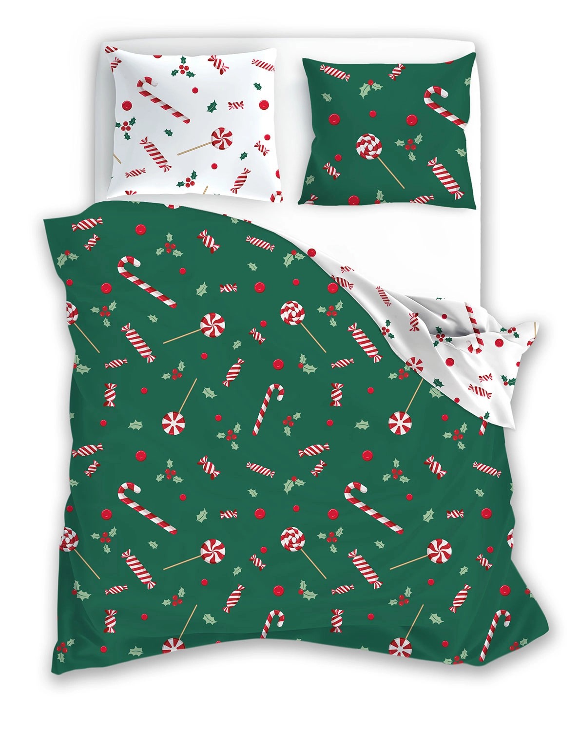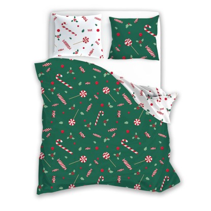 Pościel bawełniana SCANDIC 220 x 200 cm cukrowe laski na zielonym tle