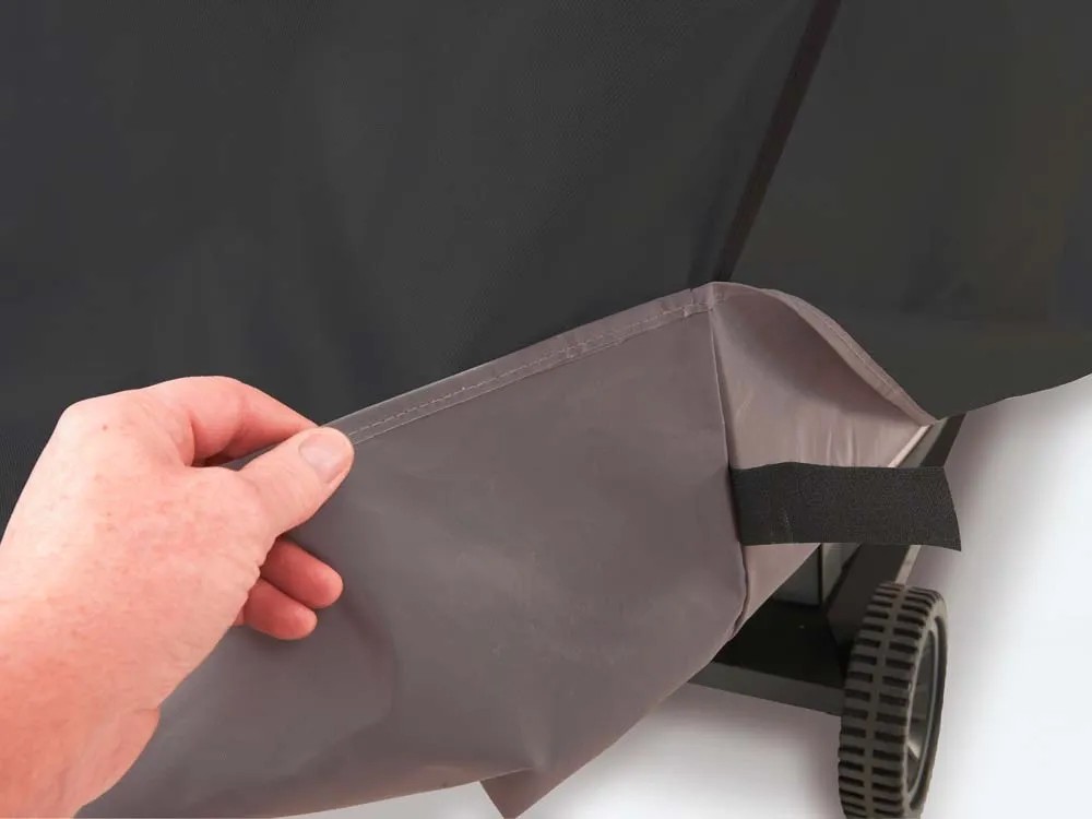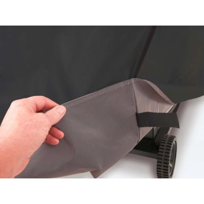 Niezwykle praktyczny pokrowiec na grill wykonany z wytrzymałej tkaniny poliestrowej powleczonej PVC. Stanowi doskonałą, całoroczną ochronę przed szkodliwymi czynnikami atmosferycznymi. Pokrowiec posiada uchwyty ułatwiające zdejmowanie oraz praktyczne rzepy, po zapięciu których ściśle przylega do konstrukcji wózka. Dzięki takiemu rozwiązaniu w czasie wiatru pokrowiec pozostaje na swoim miejscu. Gwarancja na pokrowiec wynosi 3 lata.