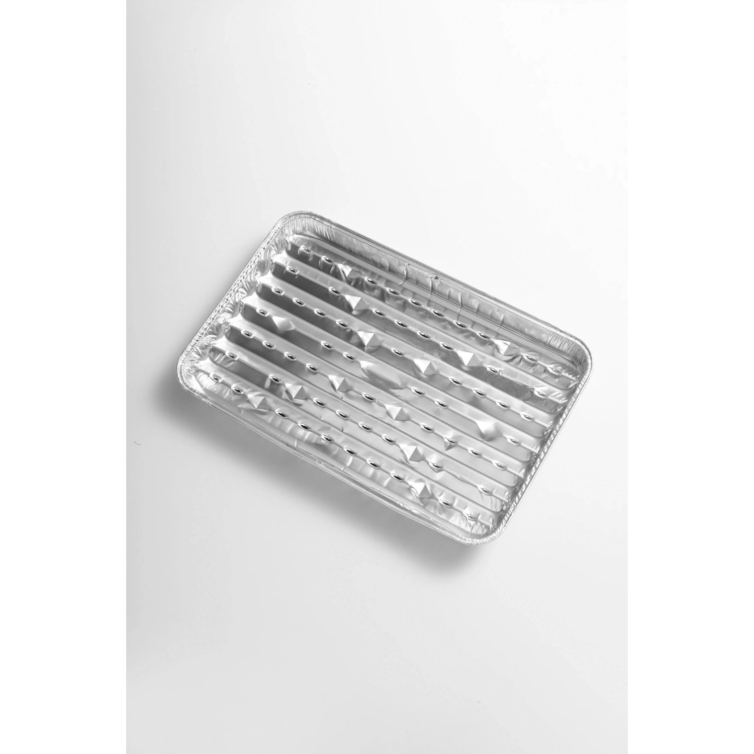 Wykonanie z aluminium, specjalne rowki wentylacyjne zapewniają lepszą cyrkulację powietrza, zestaw 5 szt. W opakowaniu jednostkowym, do jednokrotnego użytku, zdrowsze grillowanie bez negatywnego wpływu na smak potraw, powierzchnia grillowania 34 x 23 cm.