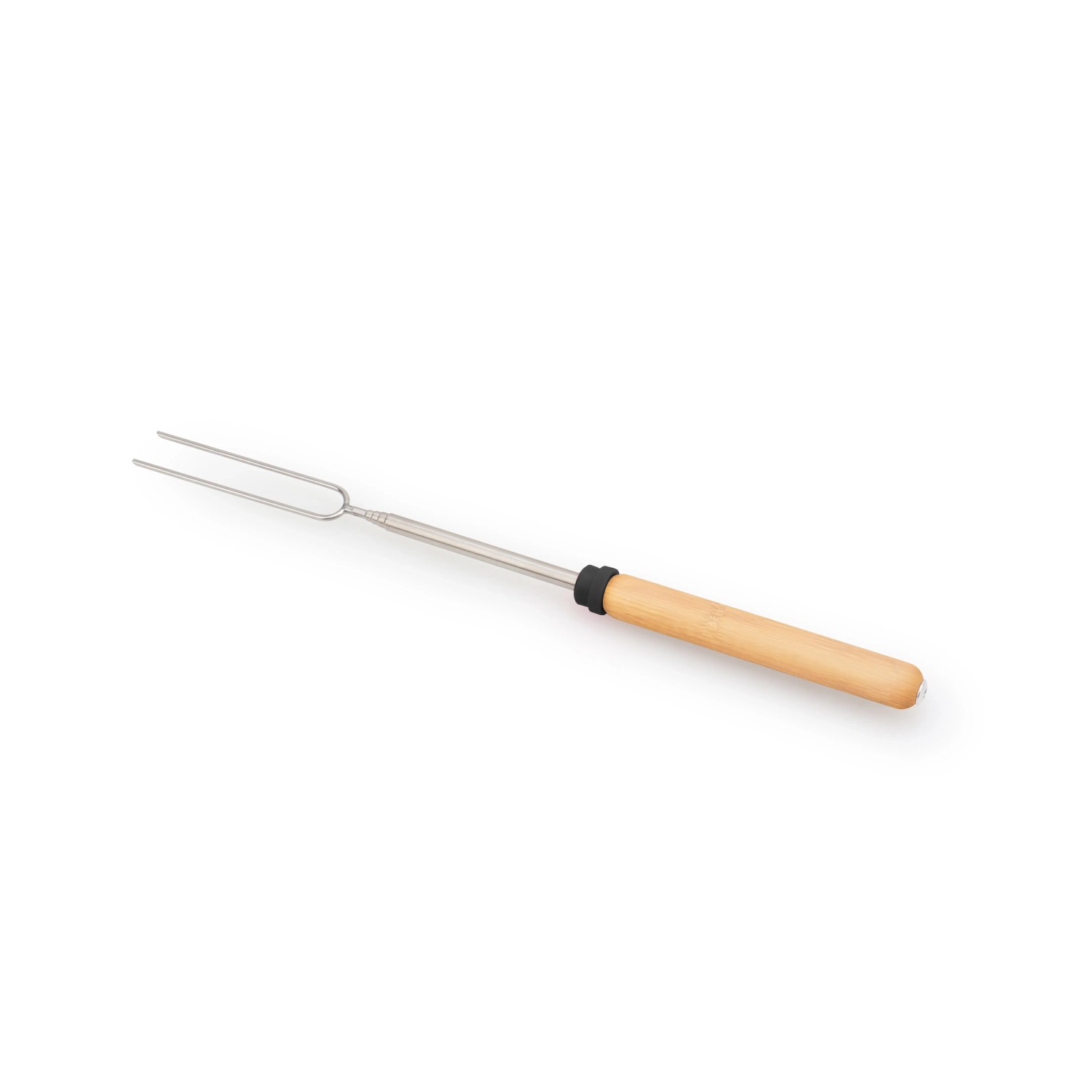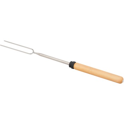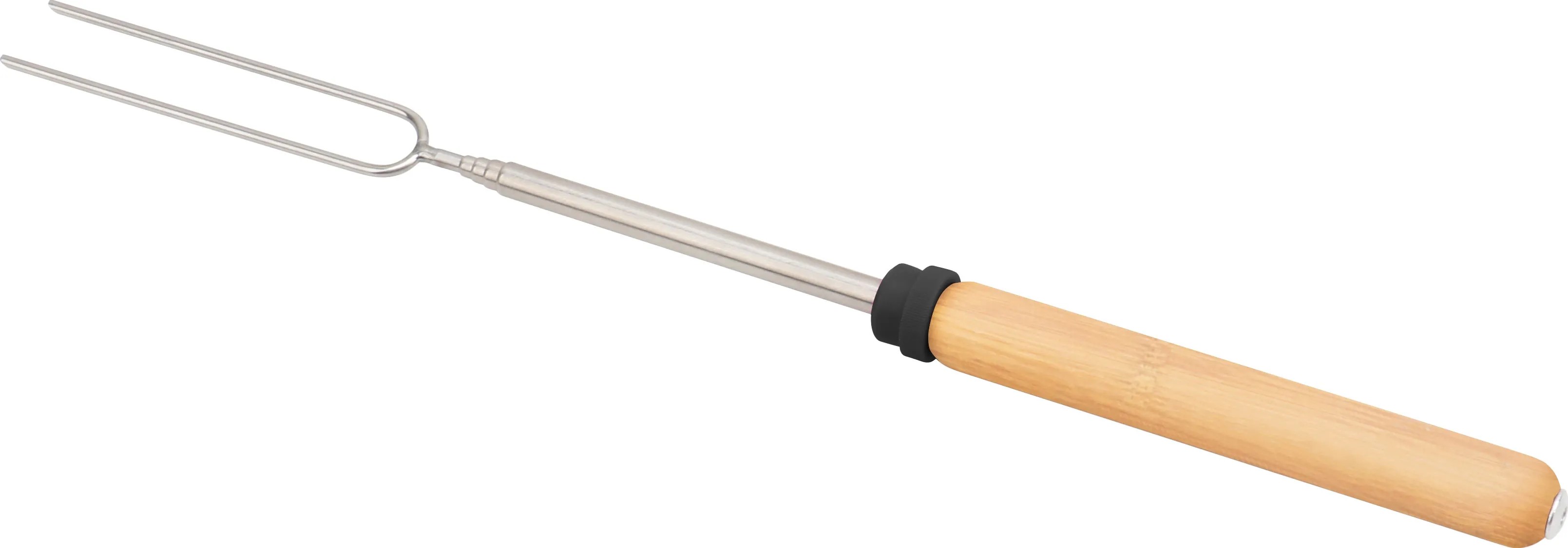 Wykonanie ze stali szlachetnej, z uchwytem drewnianym, do łatwego i wygodnego pieczenia produktów (kiełbasek) nad ogniskiem / paleniskiem, długość płynnie regulowana w zakresie: 32 - 86 cm.