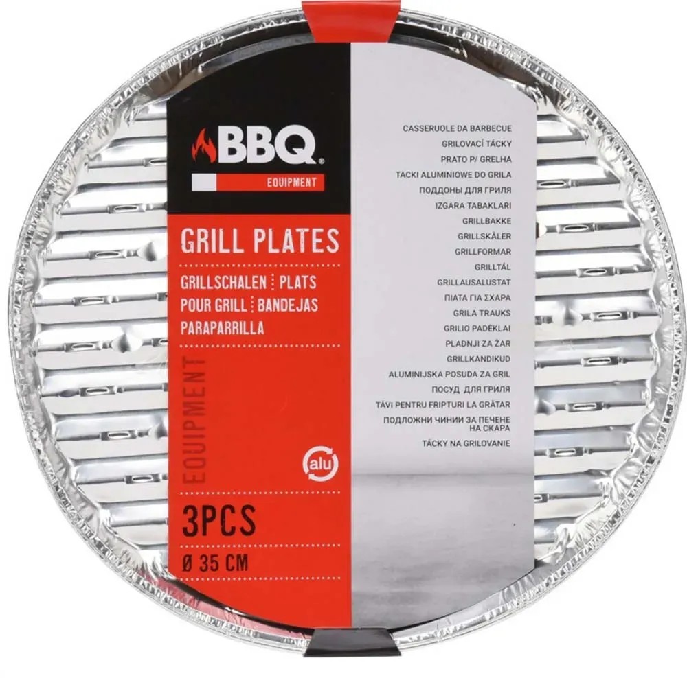 Okrągła tacka do grilla, wykonana z aluminium. W zestawie 3 sztuki. Do jednokrotnego użytku.Zdrowsze grillowanie bez negatywnego wpływu na smak potraw, powierzchnia grillowania.