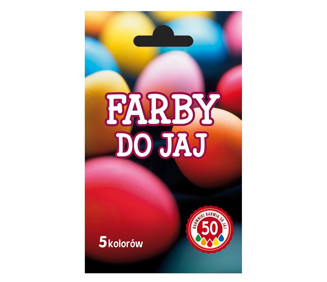 Farby do jaj w saszetkach w 5 kolorach. Zestaw wystarcza na barwienie 50 jaj.
