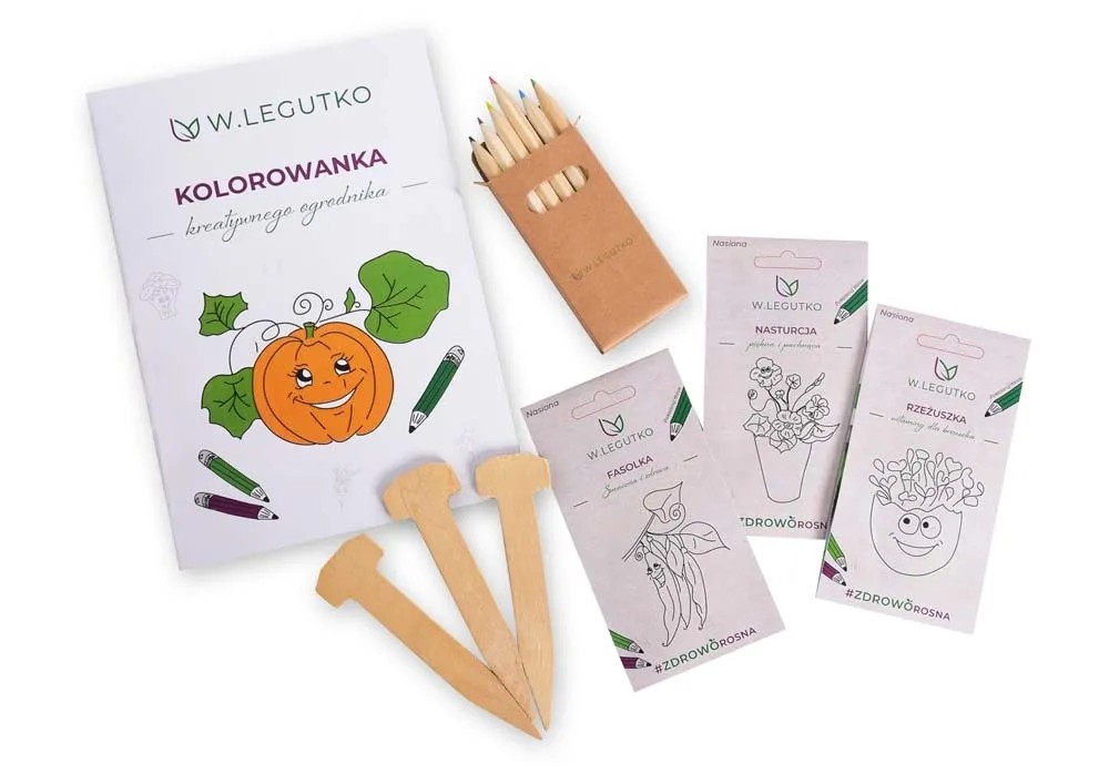Idealnie sprawdzi się dla chcących zacząć przygodę z ogrodnictwem, dając dodatkowo możliwość rozrywki artystycznej - kolorowanki. Zachęca dzieci do kreatywnego myślenia oraz podpowiada, że nie trzeba korzystać ze standardowych pojemników do uprawy.