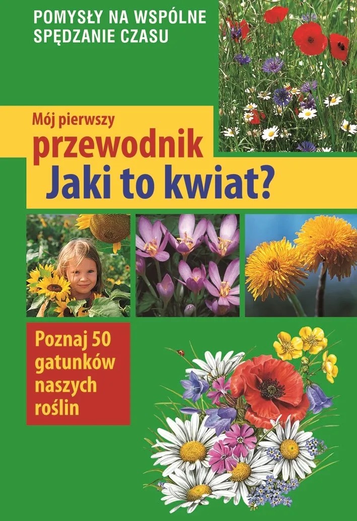 Mój pierwszy przewodnik - Jaki to kwiat? to przewodnik dla najmłodszych czytelników i ich rodziców. W książce przedstawiono 50 najczęściej spotykanych w Polsce lub najbardziej interesujących gatunków roślin. Duże, kolorowe rysunki przedstawiają portret rośliny, a krótki zrozumiały opis zwraca uwagę na jej najważniejsze cechy wyróżniające. Podano też informacje, gdzie najłatwiej znaleźć opisany gatunek, czy jest on trujący, czy jadalny oraz czy jest chroniony. Są tu też propozycje doświadczeń, które można samodzielnie wykonać, oraz proste przepisy kulinarne. Rośliny podzielono w przewodniku ze względu na kolor kwiatów.