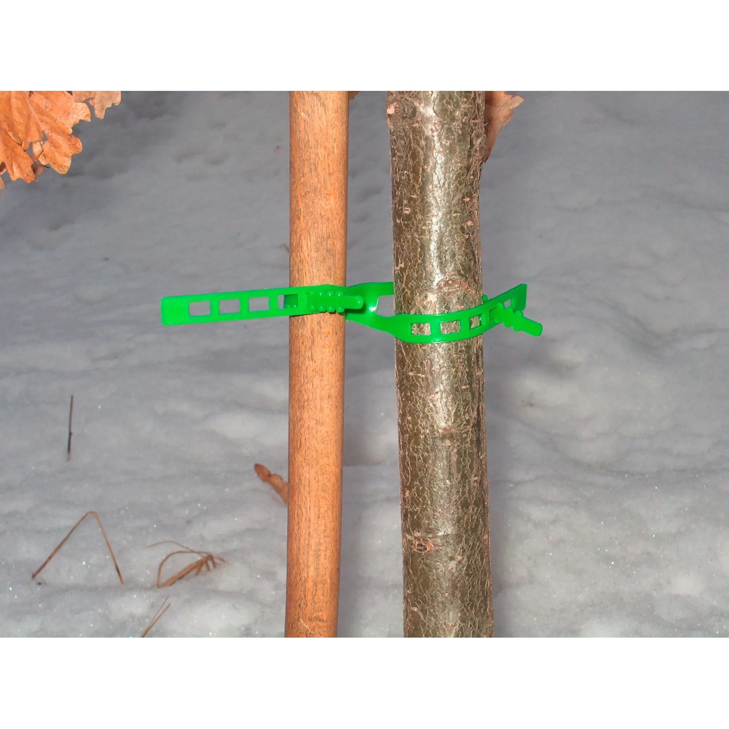 Opaski posiadają wygodną regulację, a specjalna konstrukcja zapewnia stabilne zamocowanie jej na roślinie i drążku prowadzącym.