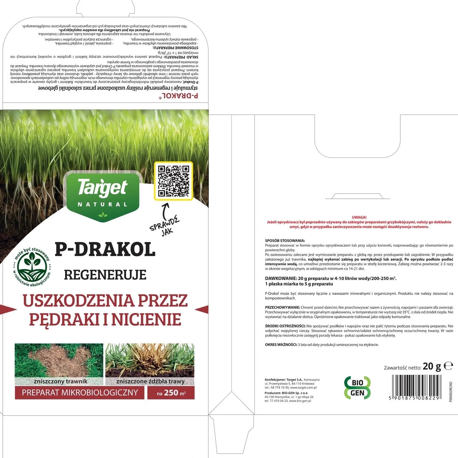 Target Natural Preparat P-Drakol przeciw pędrakom i nicieniom - 20 g.