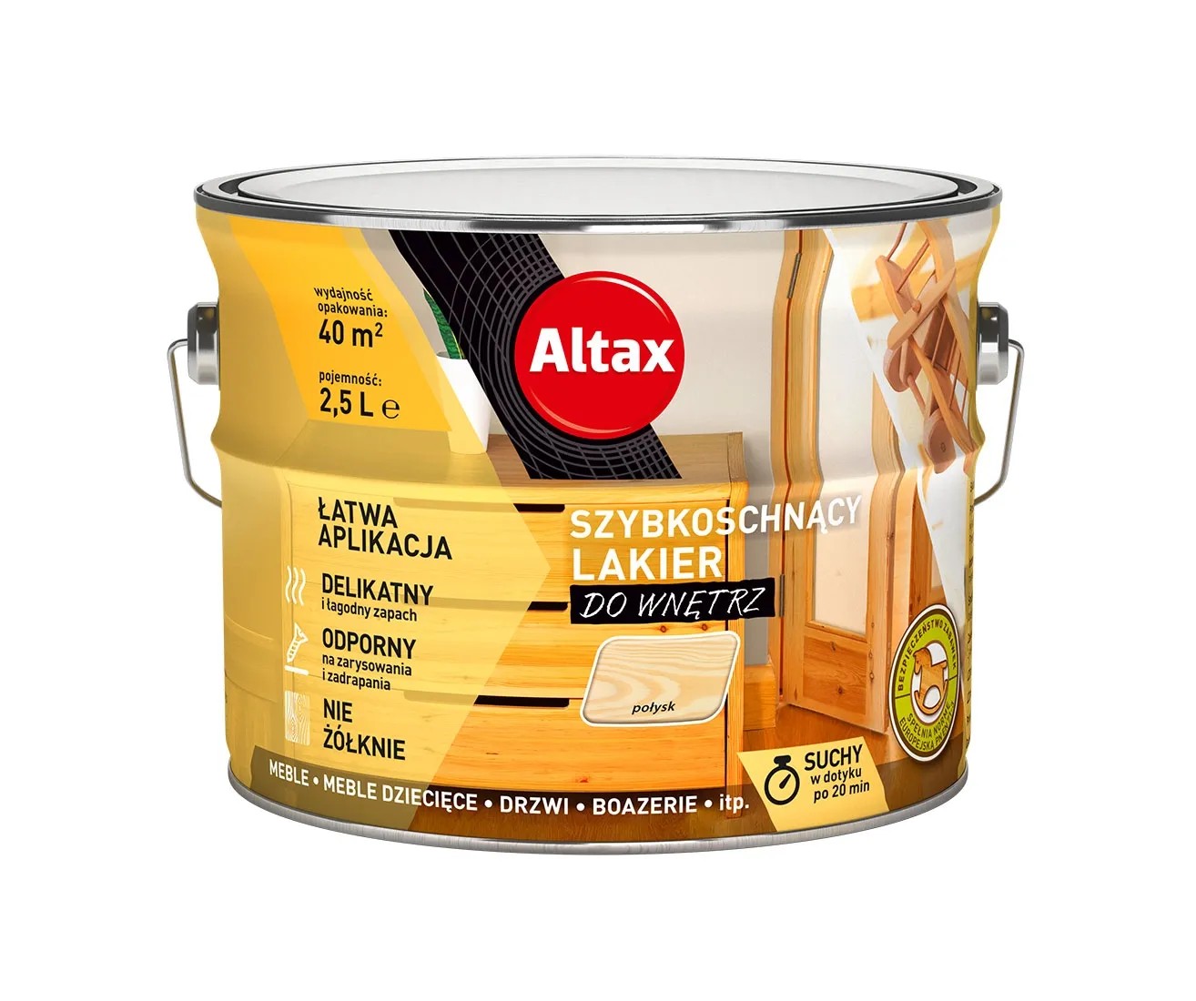 Lakier szybkoschnący do wnętrz marki Altax połysk 2,5l