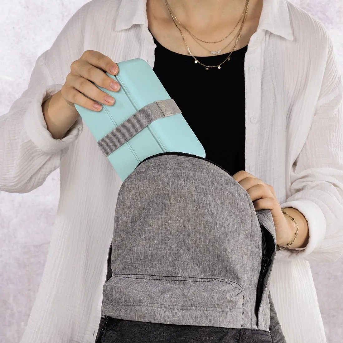 Nie wstawaj wcześniej - po prostu przygotuj swój posiłek poprzedniego wieczoru. Uszczelka silikonowa w pokrywie jest wodoodporna, dlatego Twoje posiłki pozostaną świeże i chrupiące. Wygodnie zjedz lunch na świeżym powietrzu lub w podróży. Szczelne zamknięcie daje pewność, że pojemnik nie otworzy się nagle w torbie.