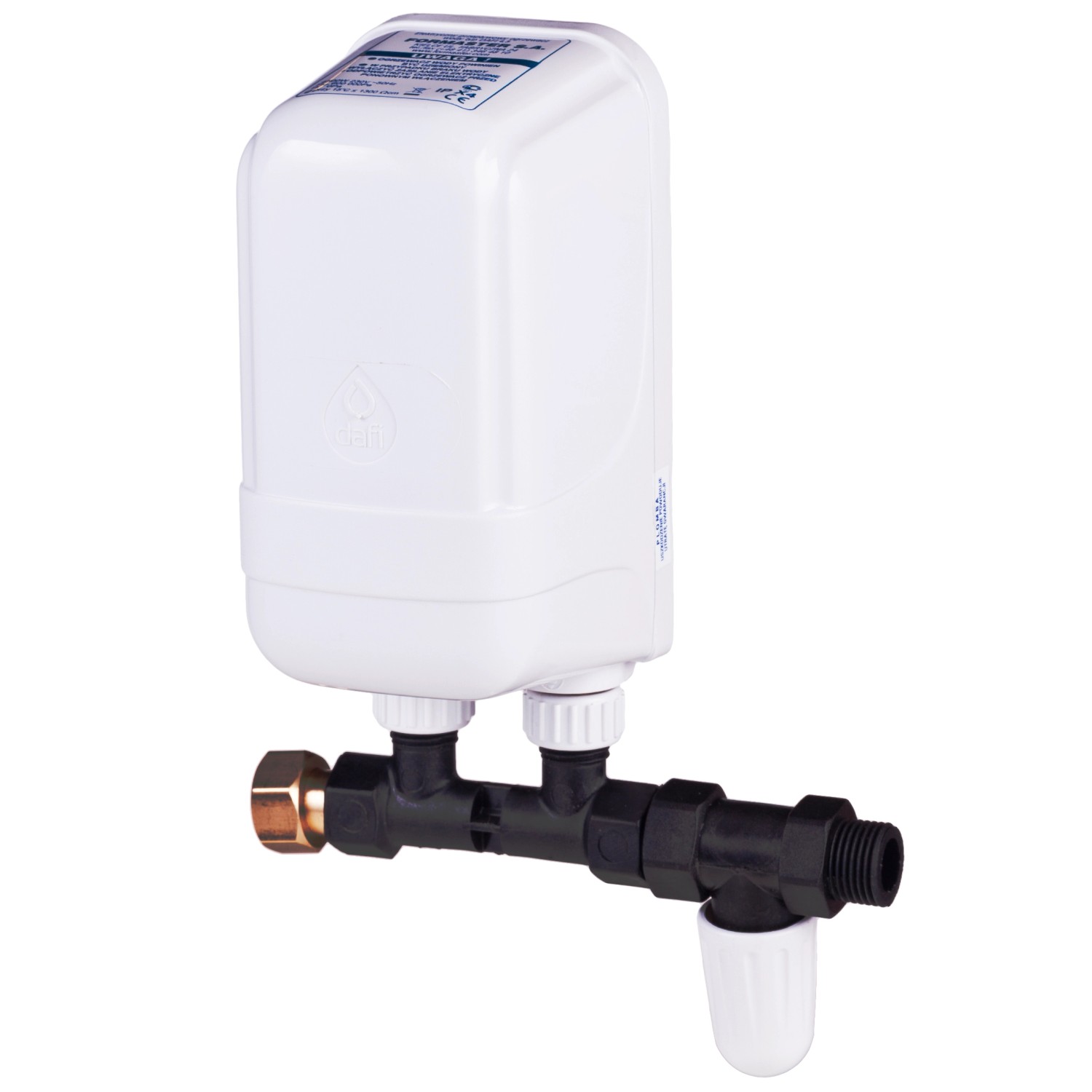 Ogrzewacz przepływowy podumywalkowy z przyłączem o mocy 4,5 kW, firmy Dafi. Jest to niewielkiej wielkości, wydajny, elektryczny podgrzewacz wody z przyłączem 1/2". Istnieje możliwość podłączenia kilku punktów poboru wody.