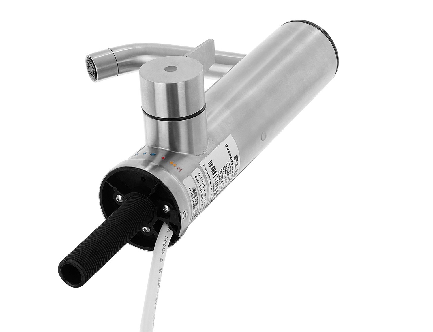Ponadto, podgrzewacz FLUX posiada solidną obudowę wykonaną ze stali nierdzewnej, gwarantującą nie tylko trwałość, ale również estetyczny wygląd, który doskonale wpasuje się w każdą kuchnię, łazienkę, domki letniskowe czy przyczepy kempingowe.