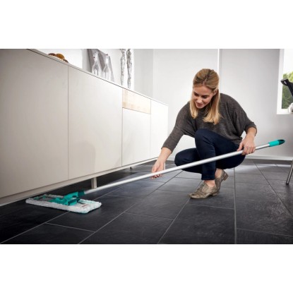 Mop Profi z nakładką micro duo i aluminiowym drążkiem marki Leifheit jest bardzo praktyczny i z pewnością znajdzie zastosowanie w każdym pomieszczeniu. Mop nadaje się do wszystkich rodzajów podłóg (parkiet, laminat i drewno, winyl, płytki), a nakładka micro duo do mopa Profi marki Leifheit dzięki mikrowłóknom i specjalnemu włosiu myje ze zdwojoną skutecznością: trochę dłuższe, specjalne włosie usuwa brud z każdej fugi, a w przypadku chropowatych powierzchni z każdego zagłębienia. Nakładkę można prać w temp. 60 st. C (bez płynu do płukania tkanin). Dzięki ruchomemu i obrotowemu przegubowi 360° dokładnie myje w zakamarkach i sięga pomiędzy szafy i pod meble, zapewnia efektywne i szybkie mycie nawet najbardziej zabrudzonych powierzchni. Szeroka 42-centymetrowa nakładka do mopa pozwala zaoszczędzić wiele cennego czasu. Mop Profi z nakładką micro duo i drążkiem aluminiowym marki Leifheit umożliwia wymianę nakładek - możesz dostosować jej rodzaj do swoich aktualnych potrzeb. Antypoślizgowa końcówka drążka z otworem do wieszania pomaga w pracy i ułatwia przechowywanie. Lekki, bo wykonany z aluminium drążek ma długość 140 cm. System Click pozwala na wykorzystanie drążka do innych akcesoriów Leifheit (szczotek, ściągaczek, myjek do szyb i kafelków itp.)