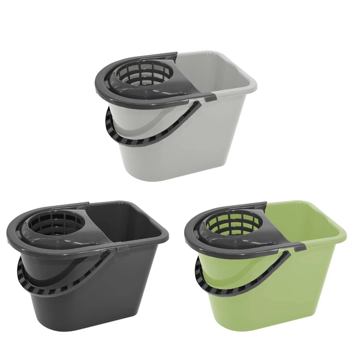 Niezbędne w każdym gospodarstwie domowym wiadro przeznaczone do prac porządkowych dostępne w trzech kolorach. Wyposażone w okrągły wyciskacz, dzięki któremu wygodnie i higienicznie usuniesz nadmiar wody z mopa bez konieczności schylania się i wyżymania ręcznie. Rant wiaderka posiada wyprofilowaną wylewkę, która zapobiega rozchlapywaniu brudnej wody podczas opróżniania. Przenoszenie umożliwia wygodna rączka.