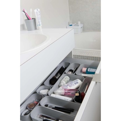 Wielorakość kształtu sprawia, że pojemnik mieści się w większości szuflad w różnych konfiguracjach, z innymi tego typu pojemnikami z serii.