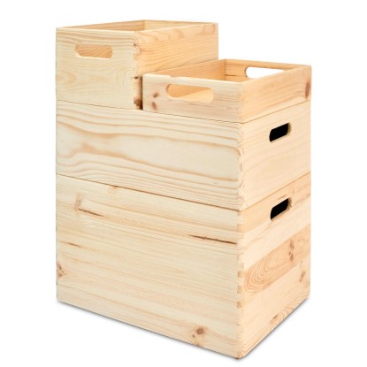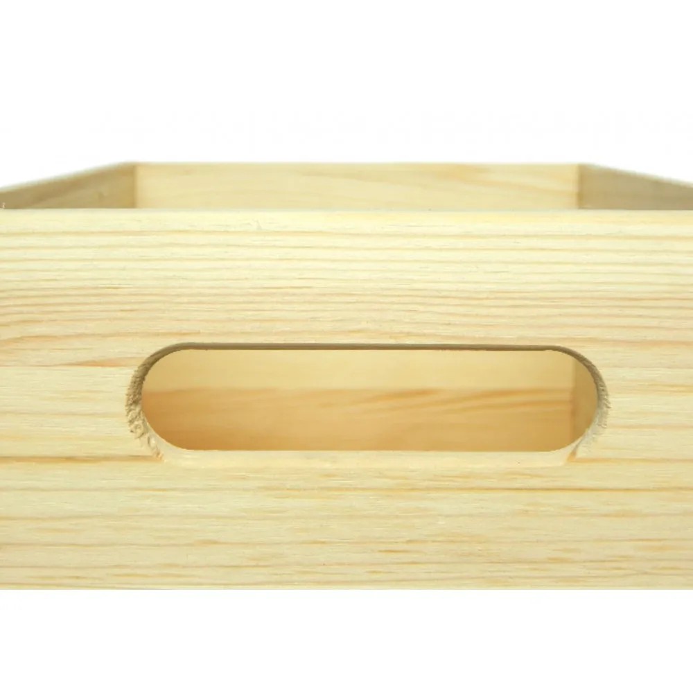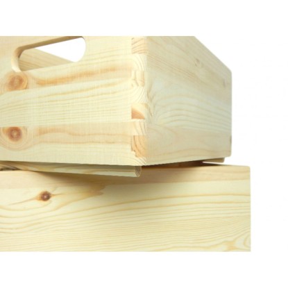 Jest to skrzynka drewniana wykonana z szlifowanego drewna sosnowego. Posiada dwa zgrabne uchwyty po bokach.