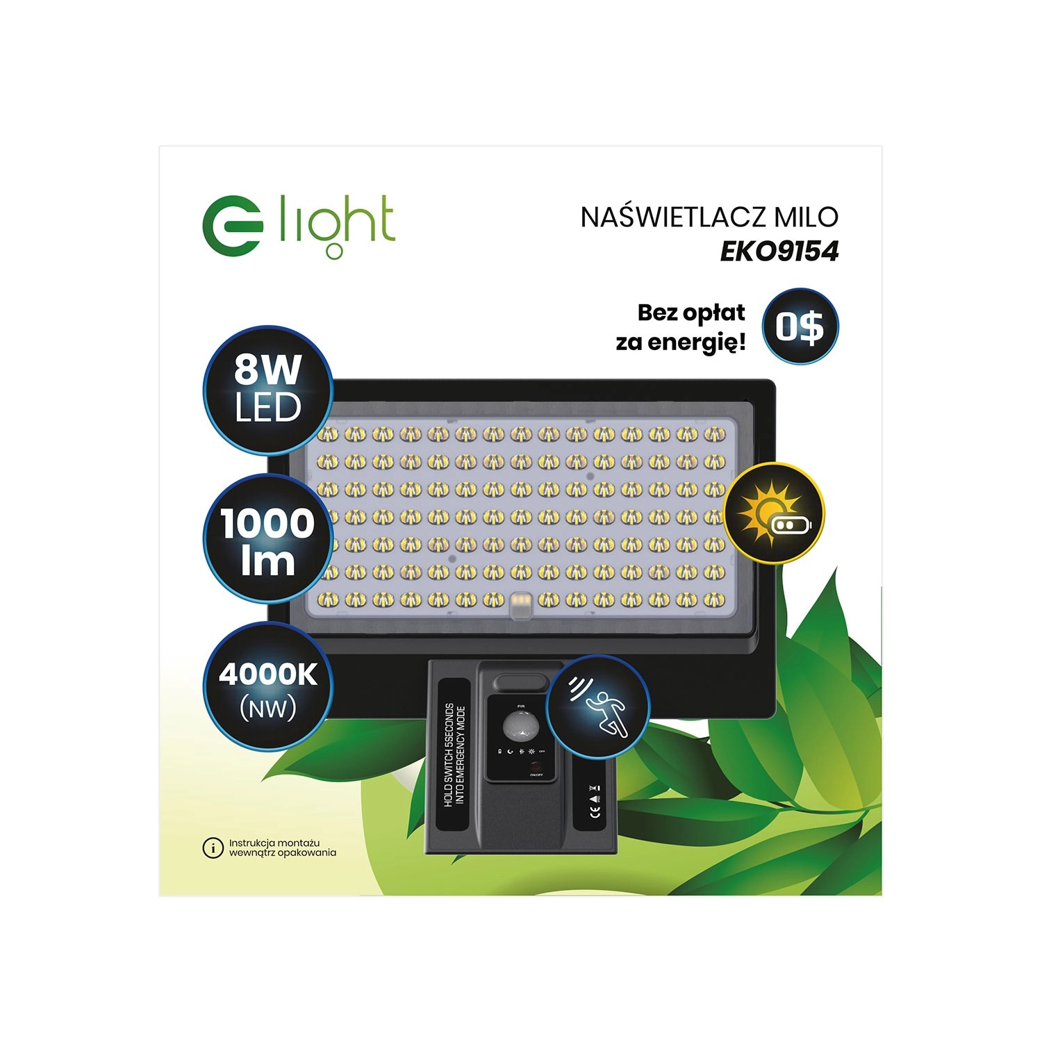 Eko-Light Naświetlacz solarny Milo 8W 1000lm 4000K IP65