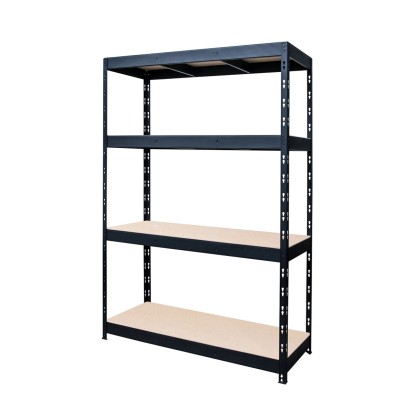 Metalkas Regał metalowy czarny 180 x 160 x 60 cm 4 półki MDF/300 kg