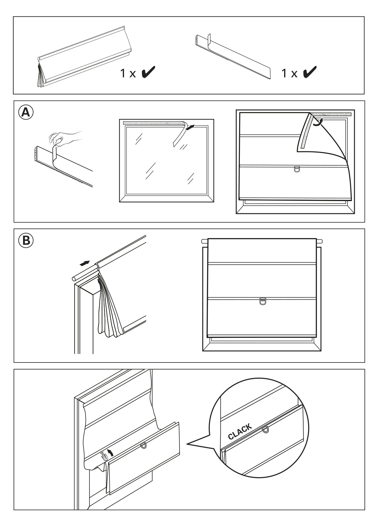 Produkt jest przeznaczony do prostej instalacji na skrzydle okna przy pomocy samoprzylepnej taśmy typu rzep. Zakładki realizowane przez magnesy w tunelach tkaniny.