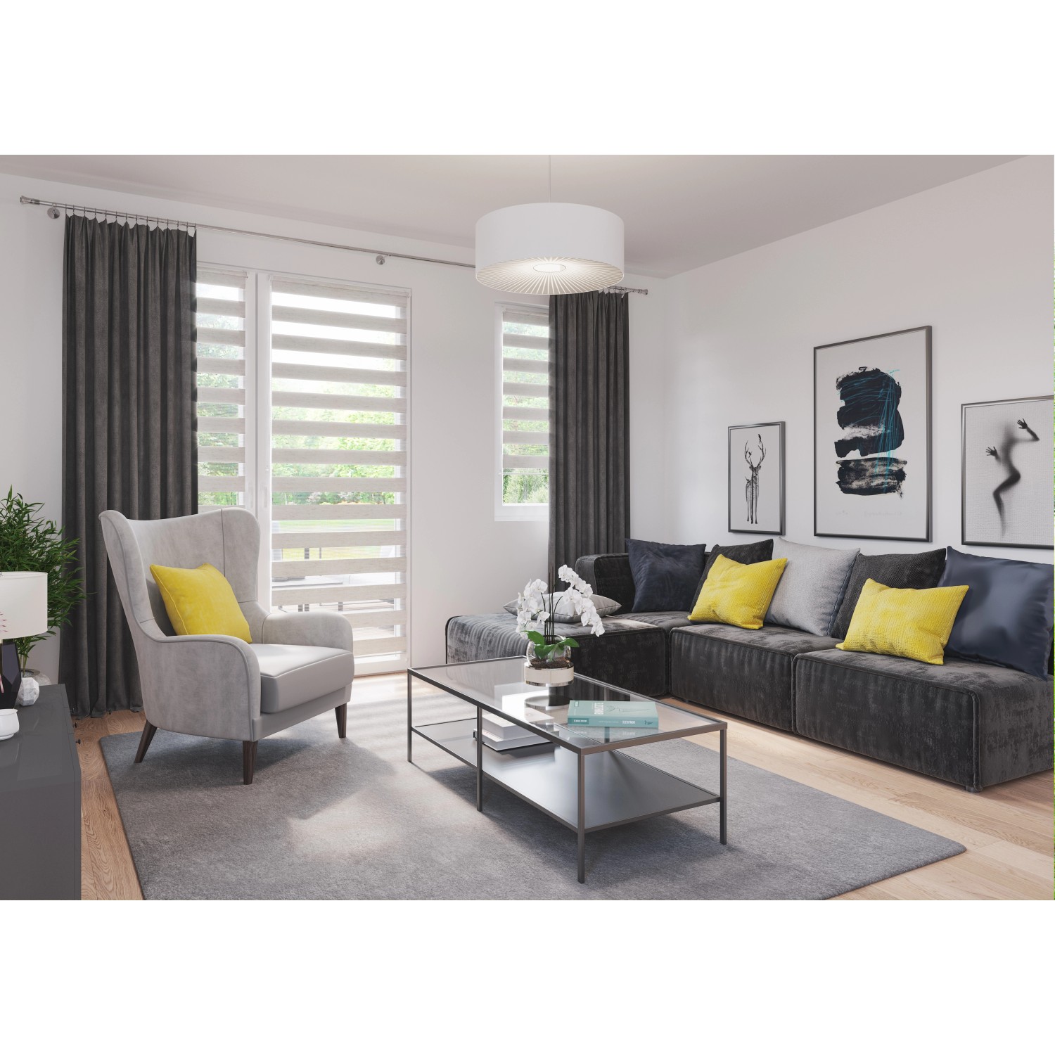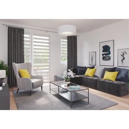 Gotowa roleta do natychmiastowej instalacji z prostym bezinwazyjnym montażem. Posiada wbudowany mechanizm żyłkowy, co umożliwia przeznaczenie także do okien uchylnych. Tkanina przylega do okna także po uchyleniu. Posiada mechanizm samohamujący. Znajdzie zastosowanie jako uzupełnienie każdej aranżacji okiennej. Tkanina o widocznej strukturze, pozwala regulować rozproszenie wpadającego światła.