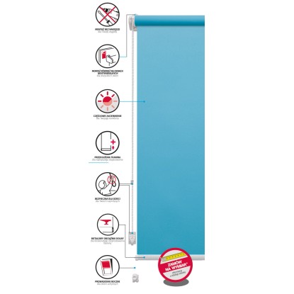 Wytrzymała, poliestrowa tkanina została powleczona w sposób przyjazny dla środowiska. Jest częściowo zaciemniająca. W skład serii wchodzi zarówno soczysty turkus, jak i stonowany popiel czy elegancki perłowy odcień. Każdy z dostępnych wariantów kolorystycznych występuje w kilku wymiarach. Z łatwością znajdziesz rozmiar, którego potrzebujesz. Sprawdź możliwe opcje, a także pozostałe rolety na Obi.pl. Kliknij tutaj.