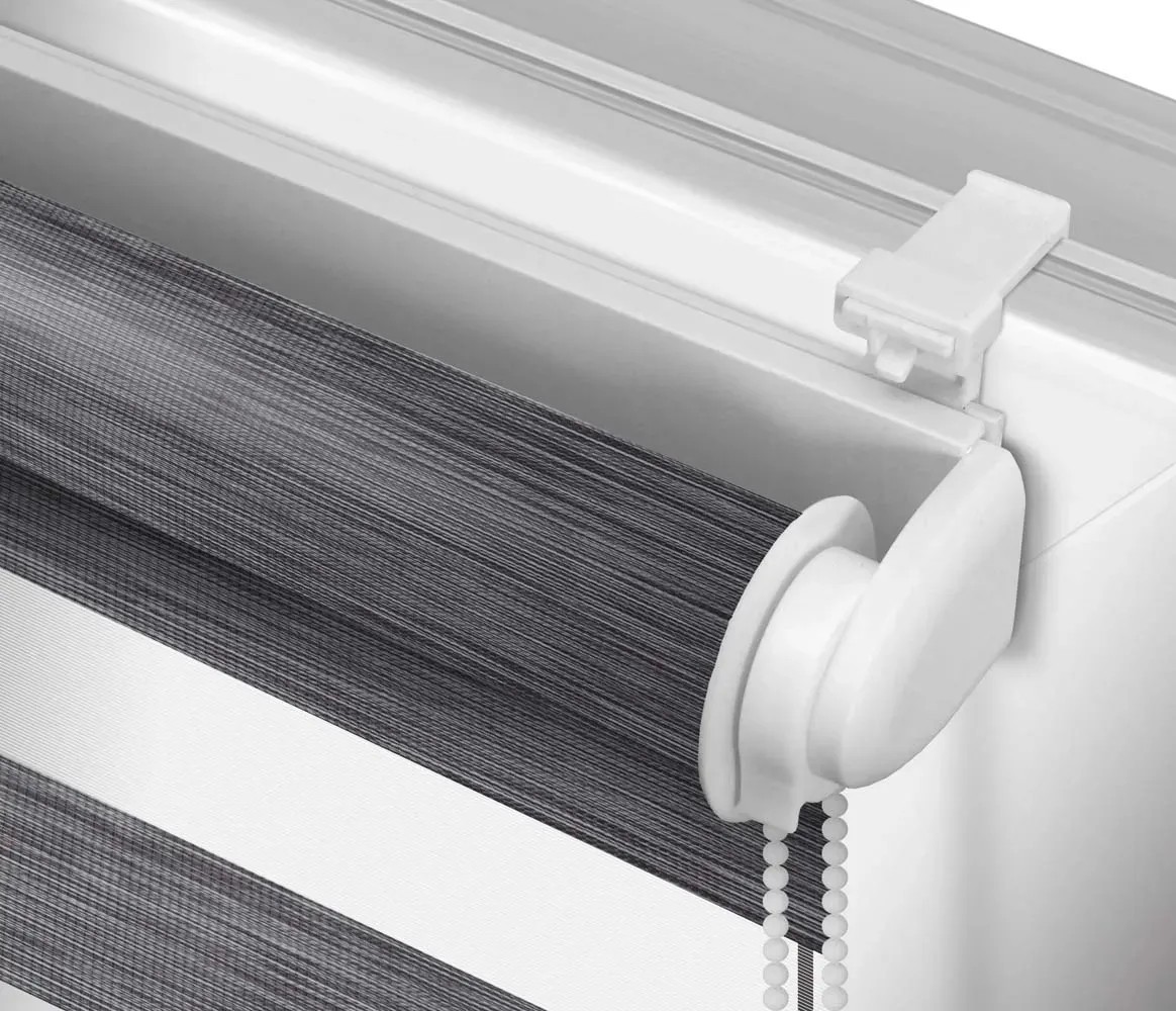 Roletę należy montować na skrzydle okiennym za pomocą zaciskowych wieszaków. Konstrukcja elementów montażowych zapewnia bezinwazyjny i prosty montaż do każdego rodzaju okna bez używania jakichkolwiek narzędzi i urządzeń. Jest możliwość nie tylko zawieszenia, ale także przyklejenia do okna bądź montażu na wkręty. Koralikowy, samohamowny mechanizm napędowy pozwala na precyzyjną regulację położenia tkaniny. Można go zainstalować zarówno z prawej, jak i lewej strony. Seria rolet Zebra wyróżnia się wysokim komfortem użytkowania, jak i szybkim, bezproblemowym montażem. Na komfort wpływa także boczne prowadzenie żyłkowe, metalowy obciążnik tkaniny oraz napinacz łańcuszka, element porządkujący jego bieg, utrzymujący łańcuszek przy ramie okna oraz umożliwiający obsługę rolety jedną ręką. Z takim zabezpieczeniem można swobodnie otwierać okno bez obaw o przypadkowe zrzucenie przedmiotów znajdujących się w pobliżu.