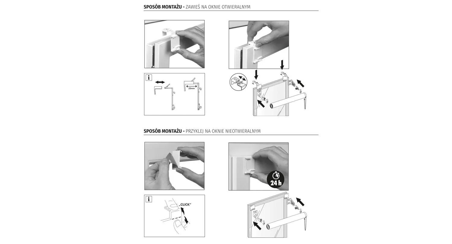 Tę wysokiej jakości roletę bez trudu zamontujesz za sprawą specjalnych uchwytów, które umożliwiają prosty montaż na ramie okiennej. Wystarczy ją zawiesić lub przykleić, konstrukcja zapewnia bezinwazyjną instalację do każdego rodzaju okna, bez konieczności używania jakichkolwiek narzędzi i urządzeń. Koralikowy mechanizm napędowy z cienkim łańcuszkiem można zamocować z prawej lub lewej strony. Utrzymuje on roletę przy oknie, nawet kiedy skrzydło jest uchylone. Jest możliwość instalacji prowadnic bocznych, w zestawie znajduje się obciążnik taniny z MDF w podwójnie zaszywanej kieszeni.