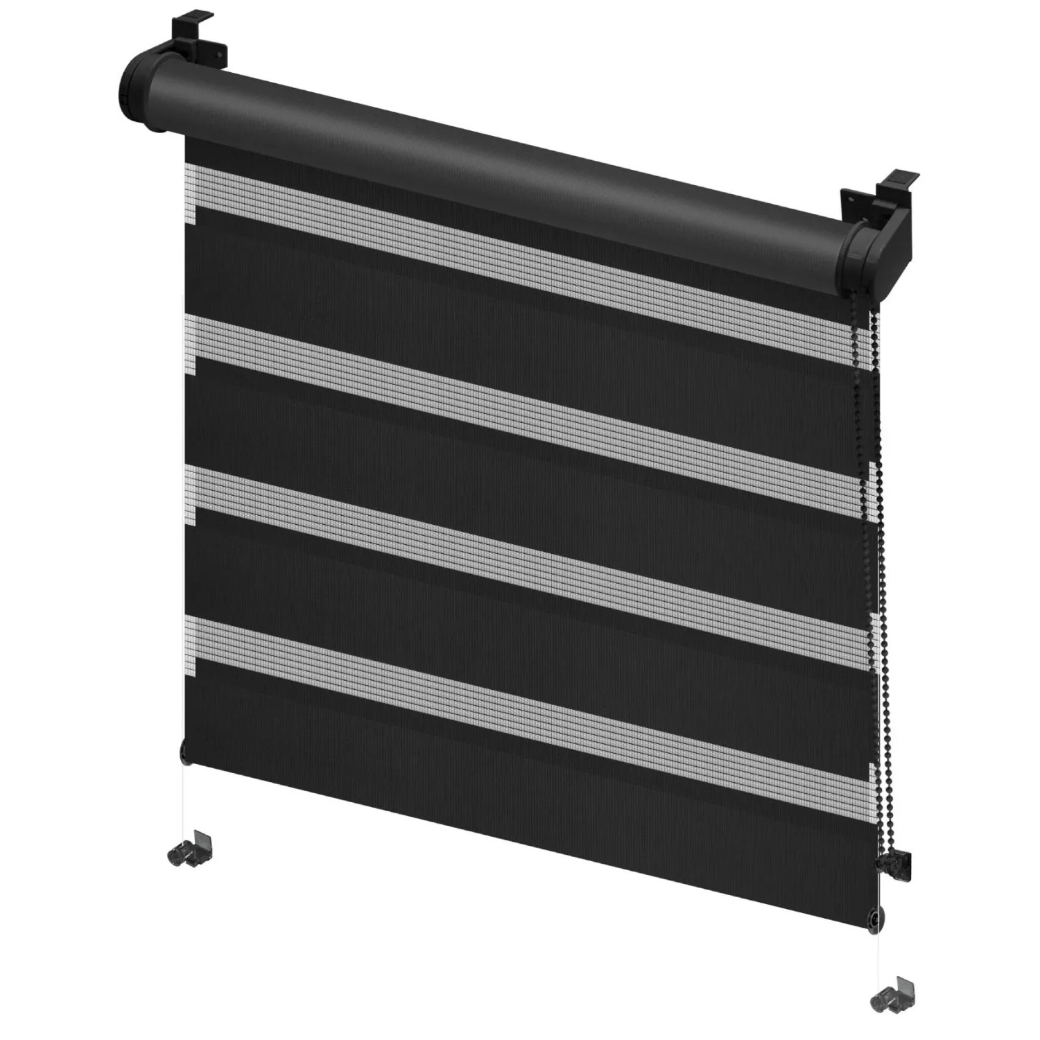 Elegancka i funkcjonalna roleta dzień/noc w kolorze czarnym i z czarnym osprzętem (mechanizm, obciążnik czarny). Specjalna, tkana segmentowo tkanina umożliwia regulację poziomu natężenia światła w pomieszczeniu. Łatwość i swoboda regulacji są możliwe dzięki zastosowaniu dwóch rodzajów przezroczystości tkaniny (zaciemniający i prześwitujący). Możemy sterować przepuszczalnością światła, dostosowując zarówno do potrzeb dziennych, jak i nocnych.