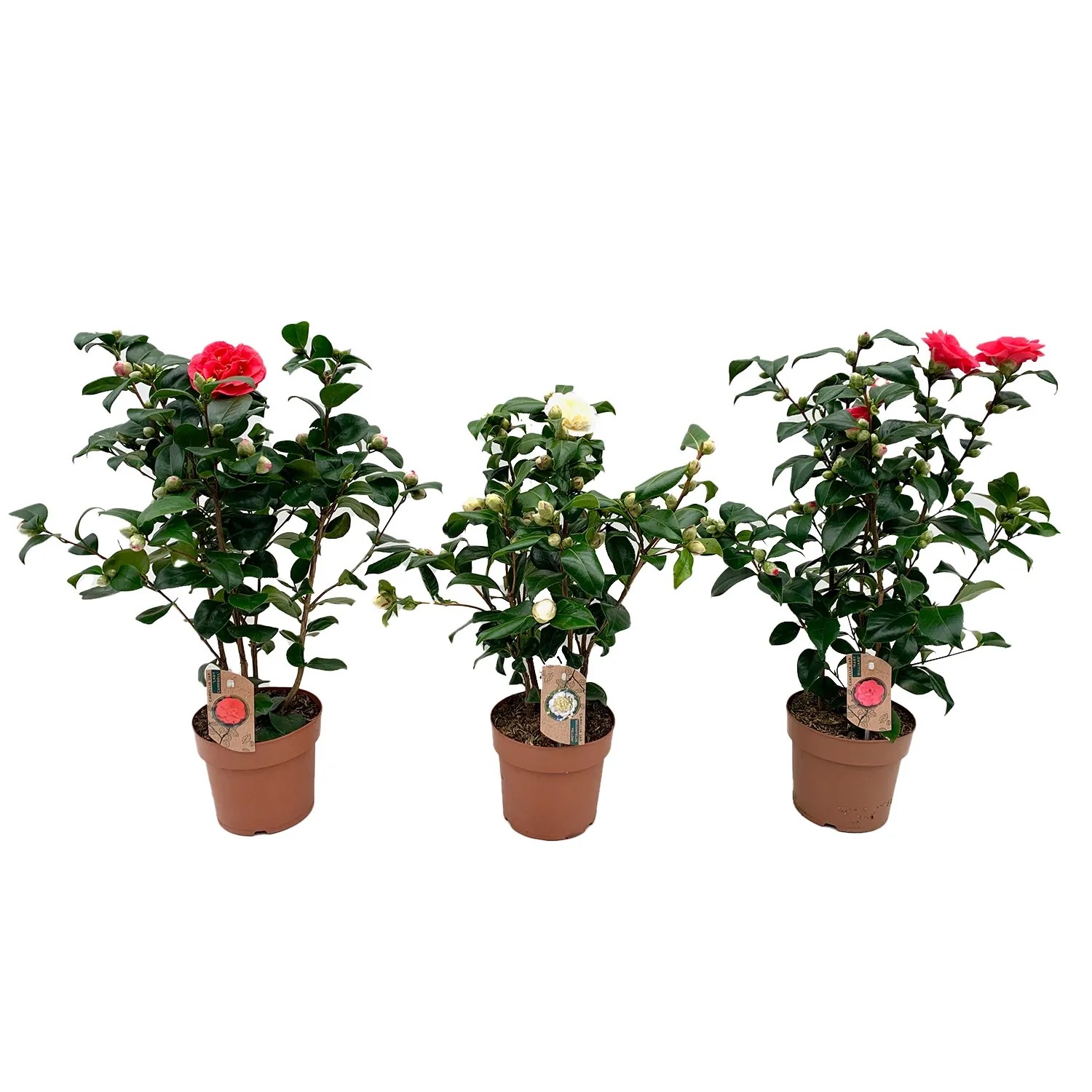 Kamelia japońska pochodzi z Japonii, Chin i Korei, gdzie rośnie w górskich lasach o chłodniejszym klimacie. To elegancka roślina ozdobna, która zachwyca swoimi dużymi, pełnymi kwiatami w odcieniach różu, czerwieni lub bieli. Kamelie kwitną zimą i wczesną wiosną, wprowadzając kolor do ogrodów i wnętrz w chłodniejszych miesiącach. Lubi stanowiska półcieniste i gleby kwaśne, dobrze przepuszczalne. Jest wrażliwa na mrozy, dlatego najlepiej uprawiać ją w pojemnikach, aby w razie potrzeby przenieść ją w cieplejsze miejsce. Optymalna temperatura to 10-18°C. Doskonała roślina do ogrodów, na tarasy i balkony.