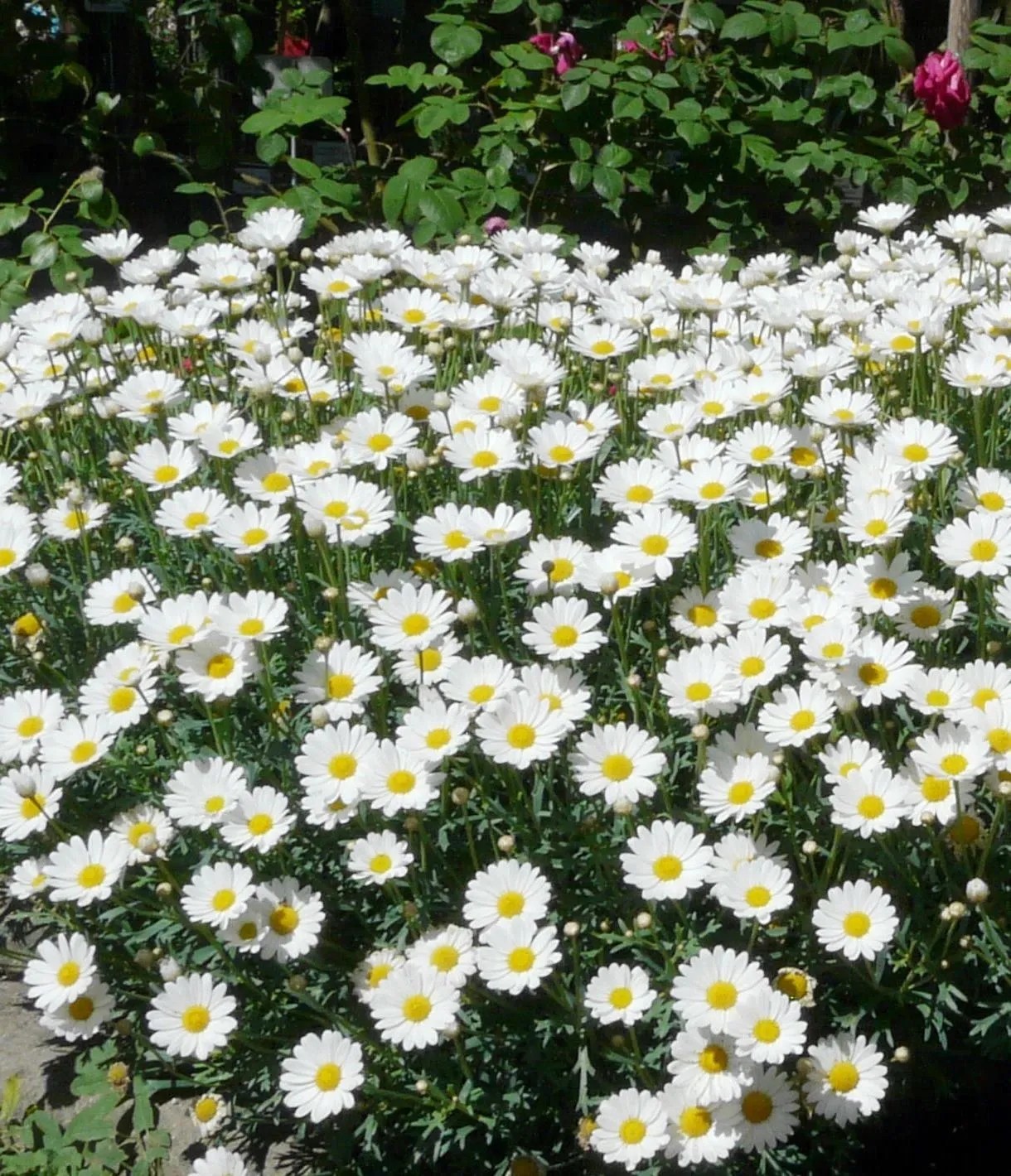 Wygląda jak duża stokrotka, białe kwiatki z żółtym środkiem. Zaczyna kwitnąć pod koniec maja i kwitnie nieprzerwanie, aż do listopada.