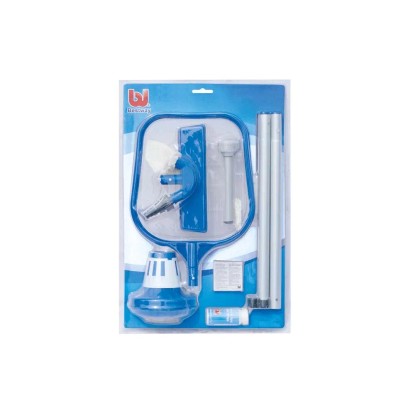 Za pomocą zestawu do czyszczenia basenu można usunąć brud i naprawić drobne uszkodzenia wyściółki basenu. Odkurzacz podłogowy i podbierak są używane z drążkiem teleskopowym i usuwają z wody gruby brud, na przykład opadłe liście. Dzięki termometrowi basenowemu zawsze można obserwować temperaturę wody, aby optymalnie aplikować chemię basenu z pływakiem dozującym. Jeśli jakość wody ma być mierzona bardziej precyzyjnie, można użyć pasków testowych zawartych w zestawie. Niewielkie uszkodzenia wyściółki basenu można naprawić za pomocą samoprzylepnej łatki naprawczej.