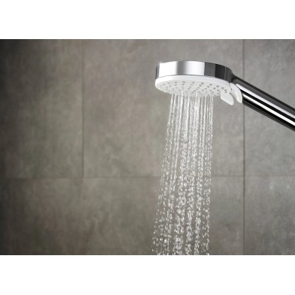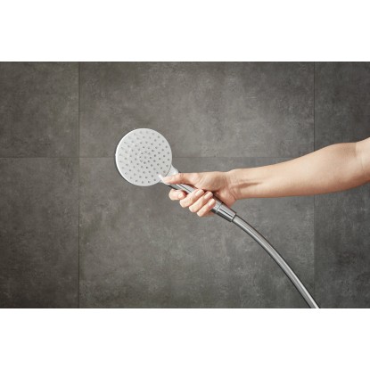 Główka prysznicowa o średnicy 10 cm posiada 2 strumienie regulowane przez obrót, a jej przepływ to 14l/min. Posiada odizolowany korpus co zapobiega nagrzewaniu się uchwytu podczas korzystania z gorącej wody. Jej filtr jest łatwy do utrzymania w czystości. Dodatkowo, w pielęgnacji pomaga zastosowanie technologii QuickClean.