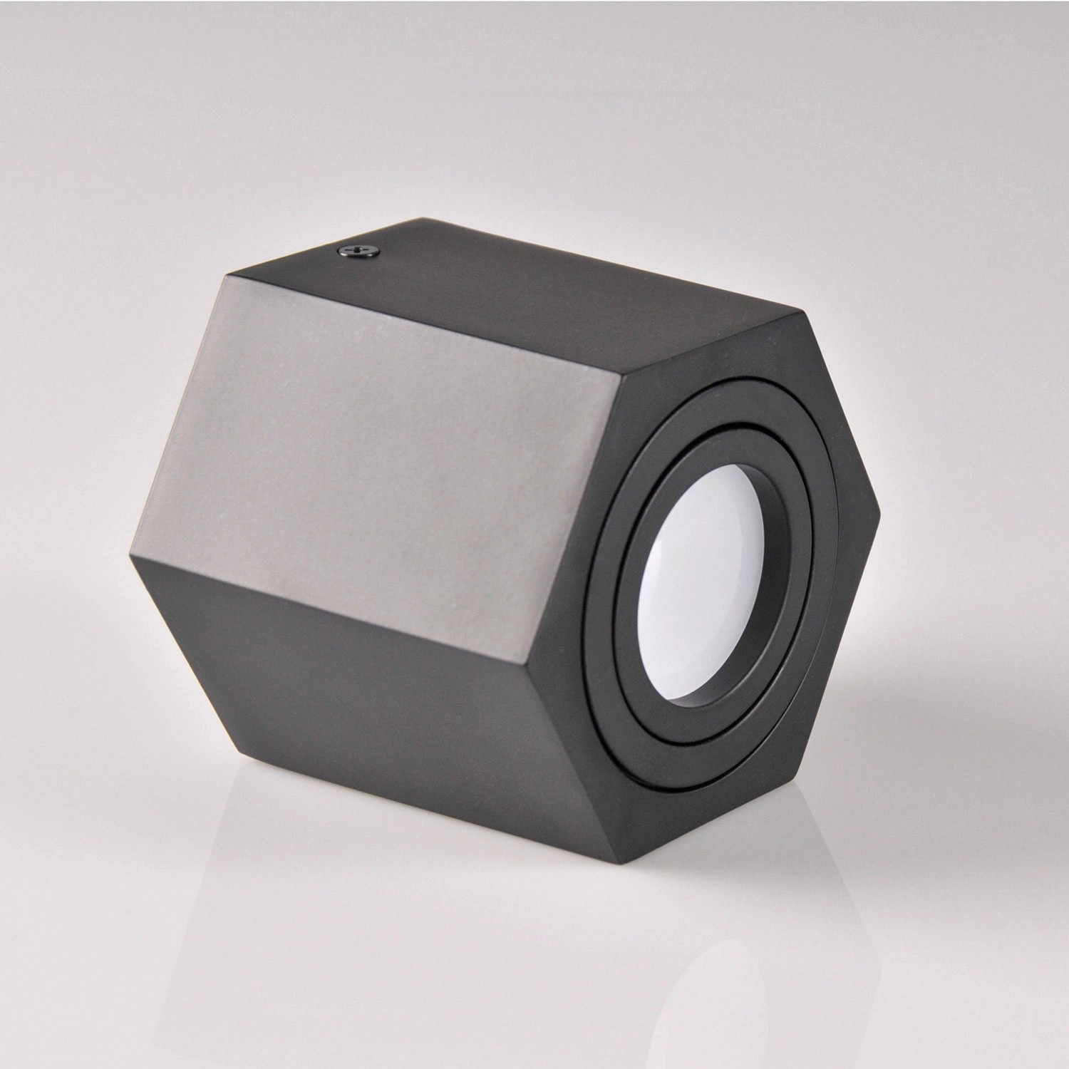 Model HEXAGON to okrągła, ruchoma oprawa natynkowa w kolorze czarnym, której ciekawa forma połączona z uniwersalną kolorystyką sprawdzi się w wielu aranżacjach, gdzie będzie ciekawym i eleganckim akcentem w wystroju.