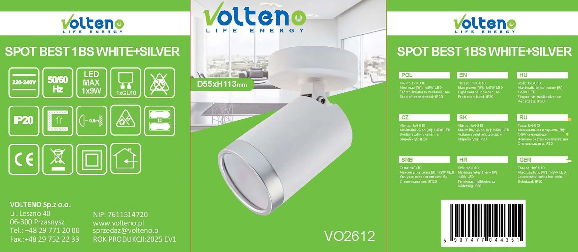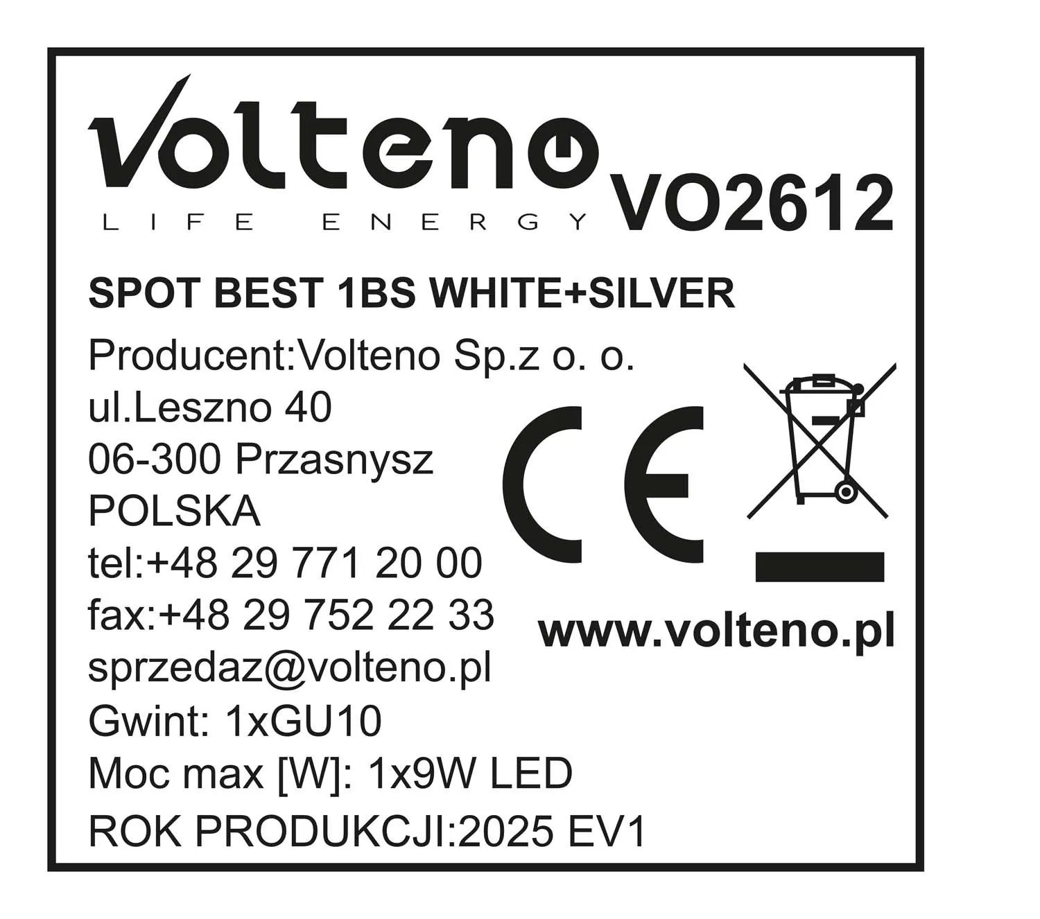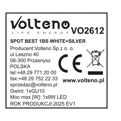Volteno Spot BEST 1xGU10 max. 9W LED biało-srebrny