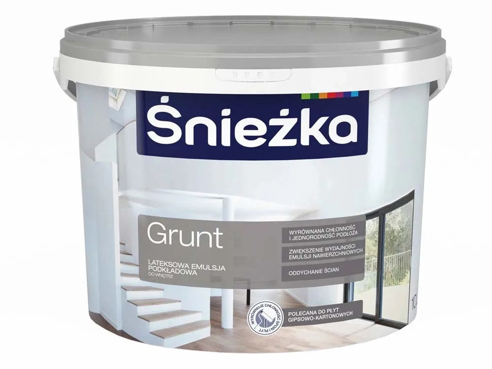 Śnieżka Grunt pozwala na szybkie i łatwe przygotowanie nierównych powierzchni do dalszych prac: dzięki specjalnym dodatkom nakłada się grubą warstwą, niwelując różnice w fakturze i barwie podłoża. Sprawdza się w malowaniu płyt gipsowo-kartonowych i podłoży o niejednorodnej fakturze. Doskonale kryje zaprawy cementowe, cementowo-wapienne, drewno i materiały drewnopochodne w pomieszczeniach mieszkalnych, użyteczności publicznej i przemysłowych. Jest niezwykle wydajna, pozwalając na zminimalizowanie ilości emulsji nawierzchniowych. Zapewnia cyrkulację powietrza wewnątrz malowanych powierzchni, eliminując problemy wilgoci, grzybów i pleśni.